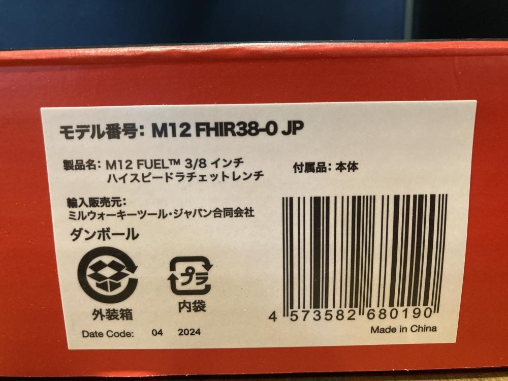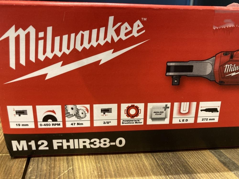 ミルウォーキー ■商品名 3/8 12V充電式ラチェットレンチ ■型番 M12FHIR38-0 |