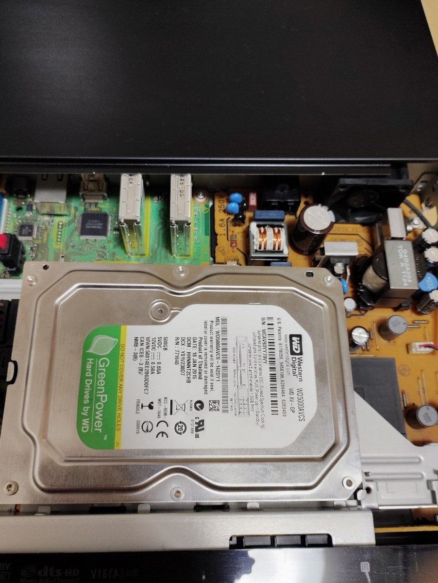 本体、B-CASカード、電源コード、リモコンのセットです。