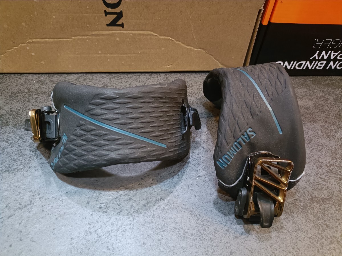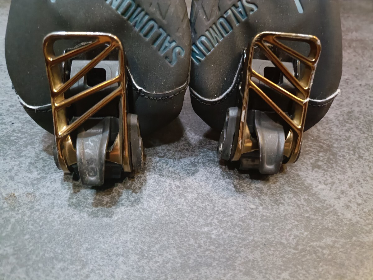 画像のようにやや使用感があるくらいのお品です。SALOMONのバインは基本流用可能ですので、是非この機会に。