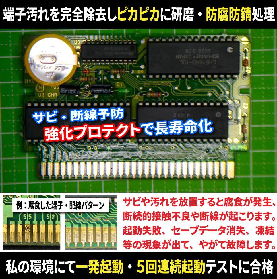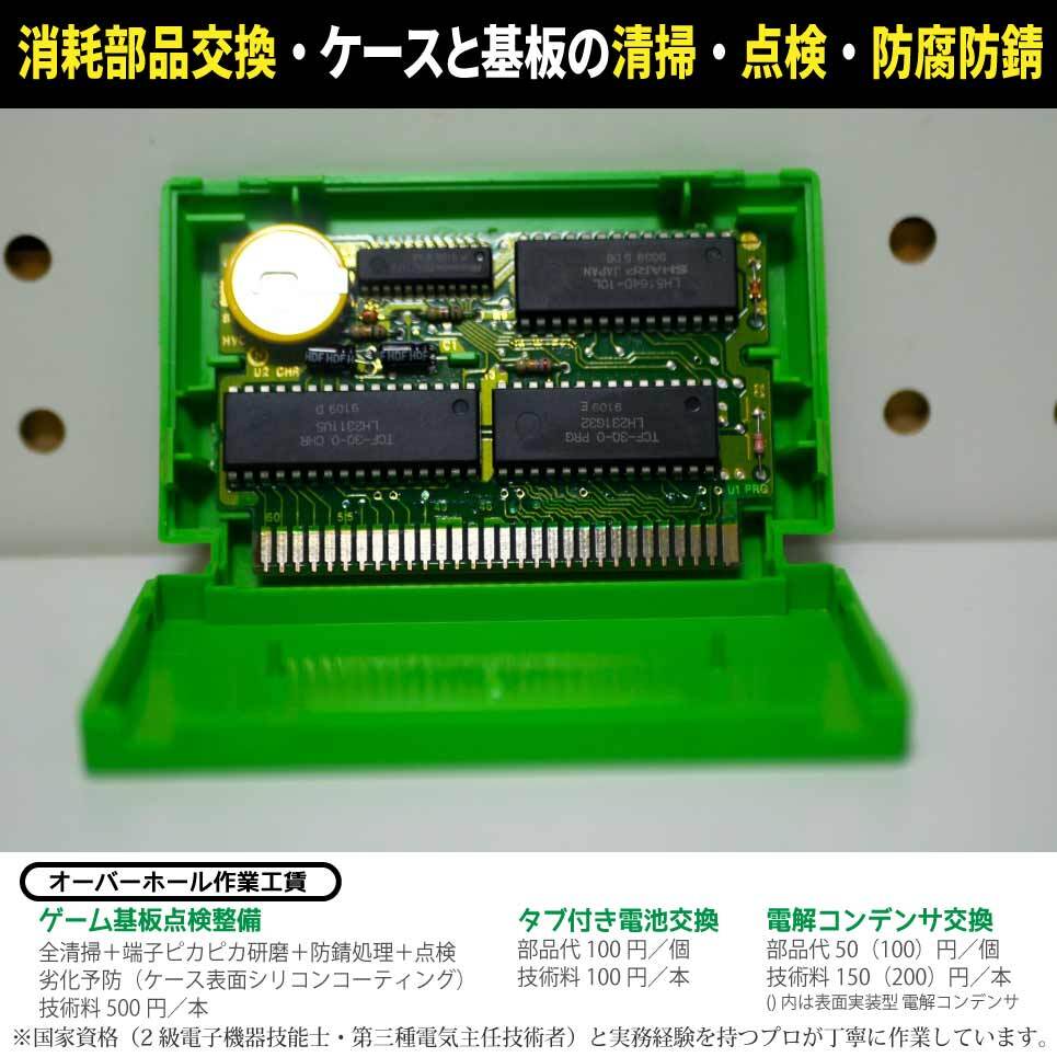 動作品を買っても一発起動しないことが多いレトロゲームを、国家資格保有の整備士が分解オーバーホール&防錆強化。連続起動性と寿命を大幅UPさせた、ここでしか買えない有資格者による超贅沢整備品!本体端子が正常なら確実に一発起動します。