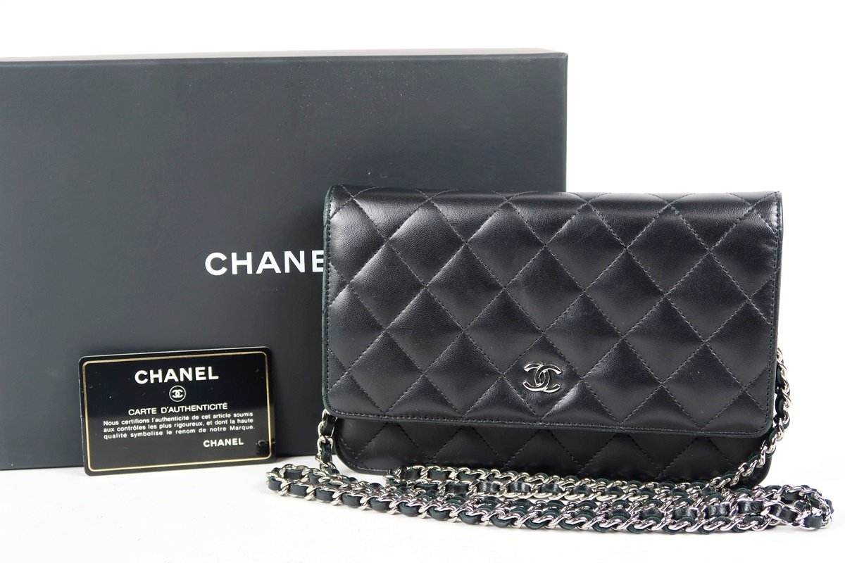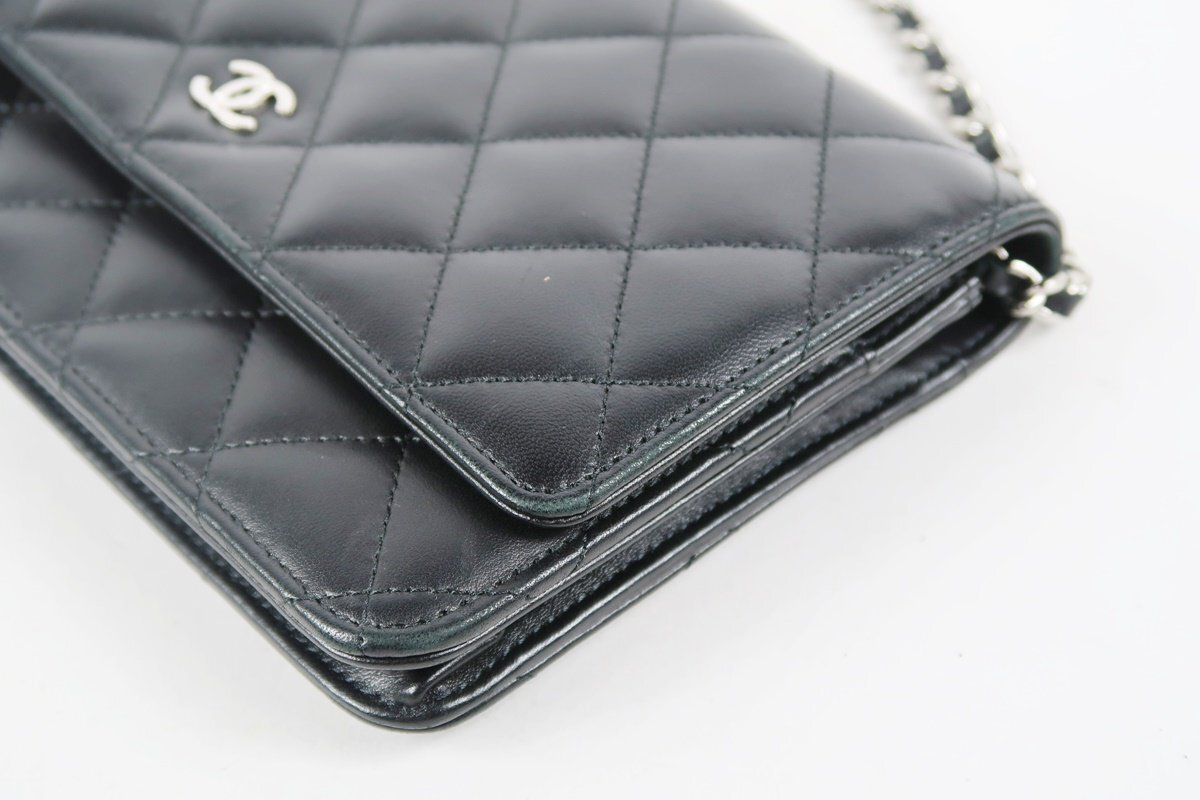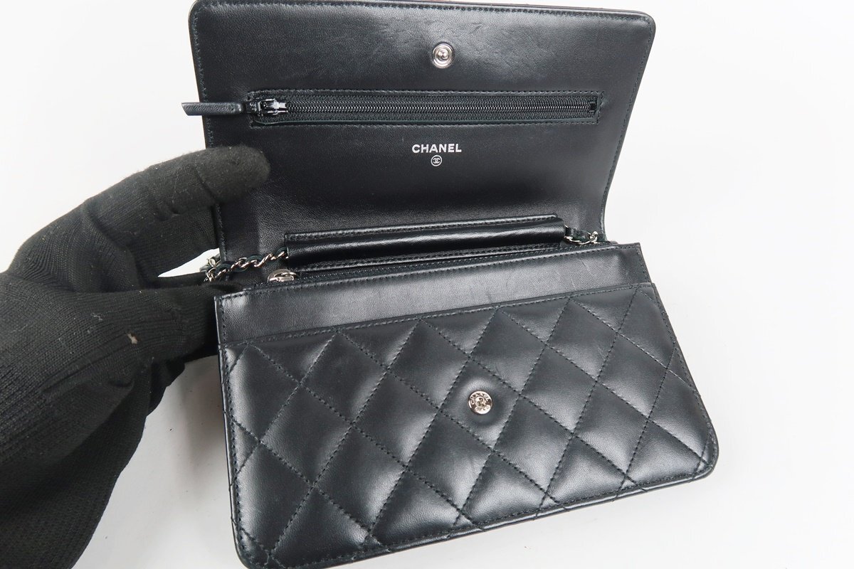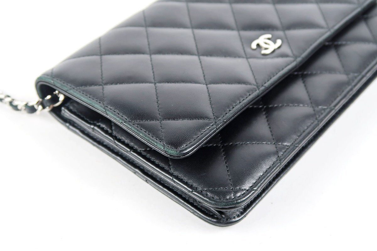 【超美品】CHANEL シャネル ラムスキン チェーンウォレット バッグ ブラック ココマーク【TF70】 |
