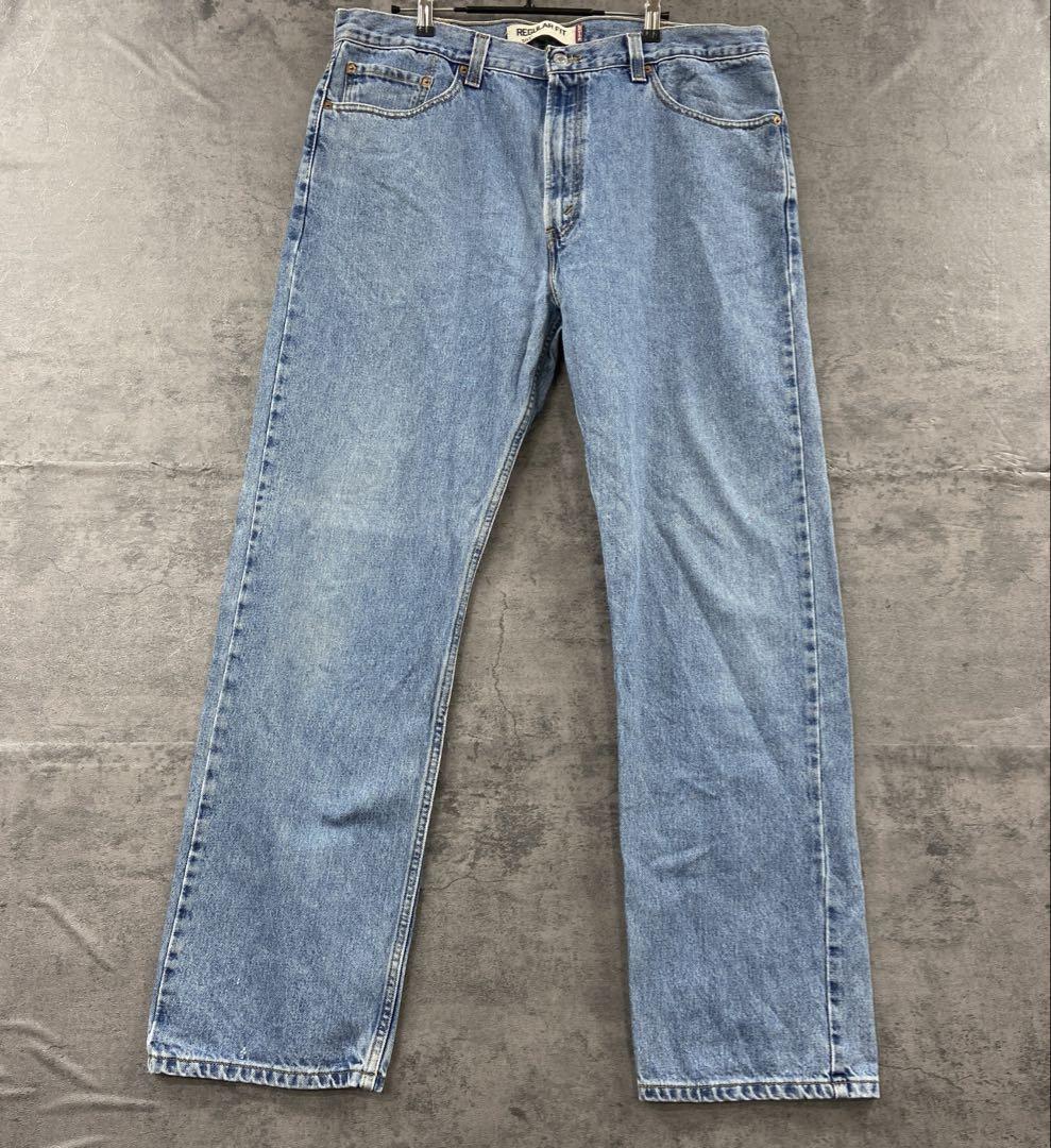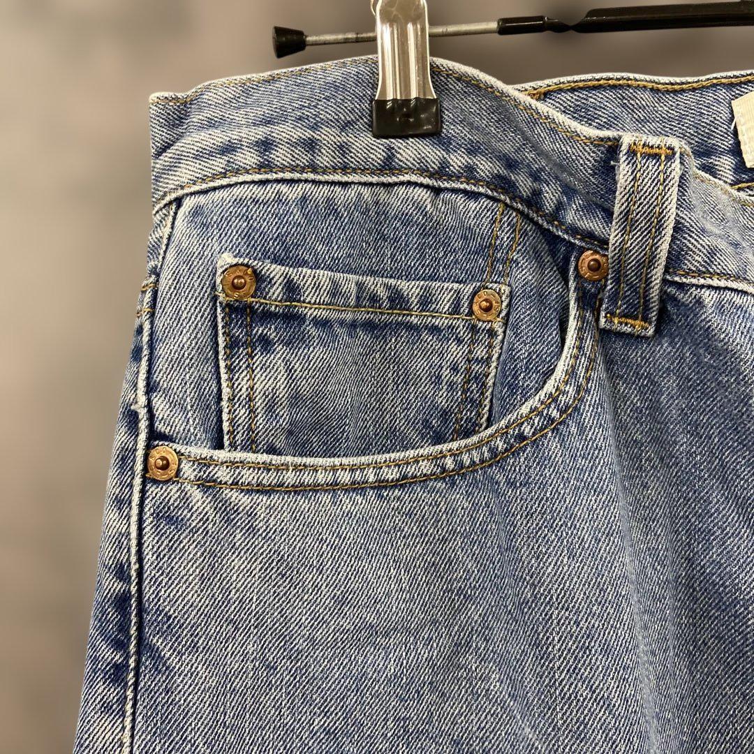ボタンフライ仕様のストレートシルエットで、古着好きから常に人気のある一本。