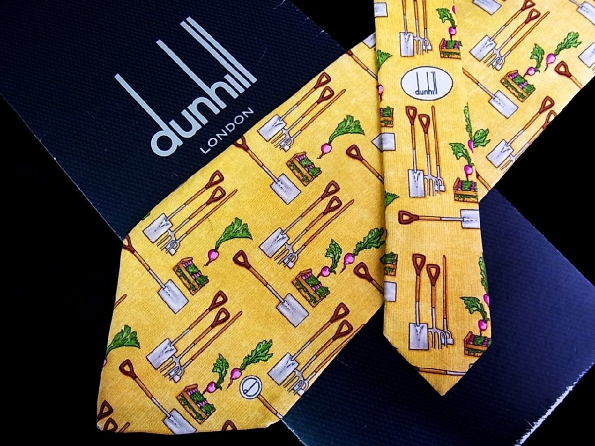 ★今週の特売★6833★高級ブランド【キャラ柄】★ダンヒル【野菜 農具 dロゴ 柄】ネクタイ★