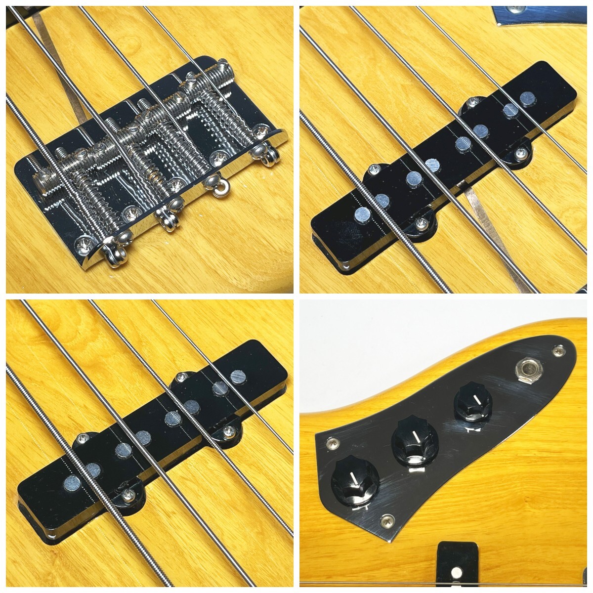 | フェンダージャパンより、フレットレスのジャズベース『JB62-FL』が入荷致しました! フェンダージャパンのジャズベースのフレットレスモデルは通常サンバーストカラーですが、こちらはクリア塗装のナチュラルカラーで、カタログにも記載のないことから、おそらく限定生産かショップオーダーにて製作された数少ないモデルと推測いたします! ボディは木目から見てアッシュ材だと思われますが、ベース全体の重量が3.8kgとアッシュにしては軽量のため、おそらくライトアッシュ(スワンプアッシュ)が使用されていると思われます! ヘッド裏にはストラップピンがあり、ペグもリバースチューナー(逆巻き)が採用されていることから、60'sのオリジナルを再現した仕様! 特にピッチのコントロールが難しいフレットレスですが、フレットレス特有の滑らかで柔らかい音色と、フレットレスでしか得られないグリッサンドやニュアンスは大きく表現の幅を広げてくれる、そんな1本です! ※ネックヒール、ネックポケットに型番のスタンプがないため正確なモデル名は断定できませんが、ネックのシリアルや、ネックとボディのジョイントの精密性から組み替えられた可能性はかなり低いと思います。 |