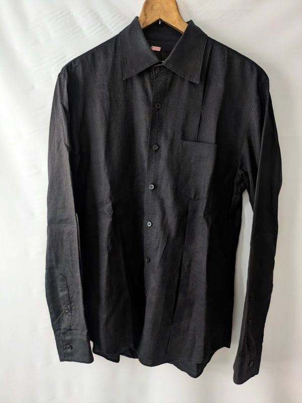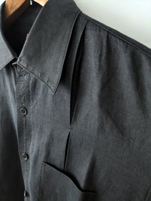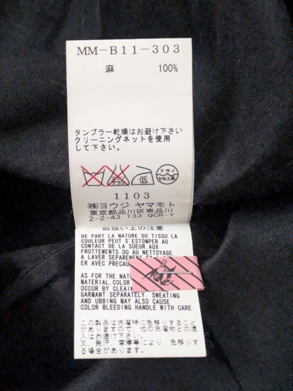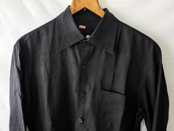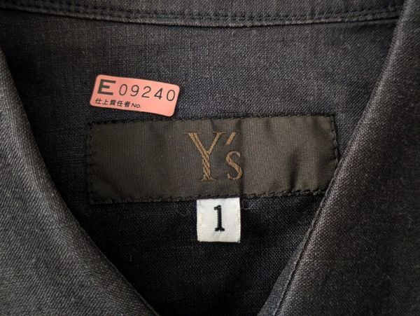 Y's ワイズ ヨウジヤマモト 麻100 リネンシャツ サイズ1 長袖 クリーニング済み 前身頃プリーツ 前立て生地 MM-B11-303