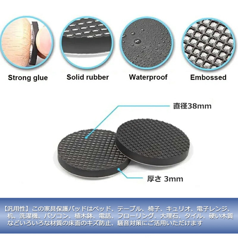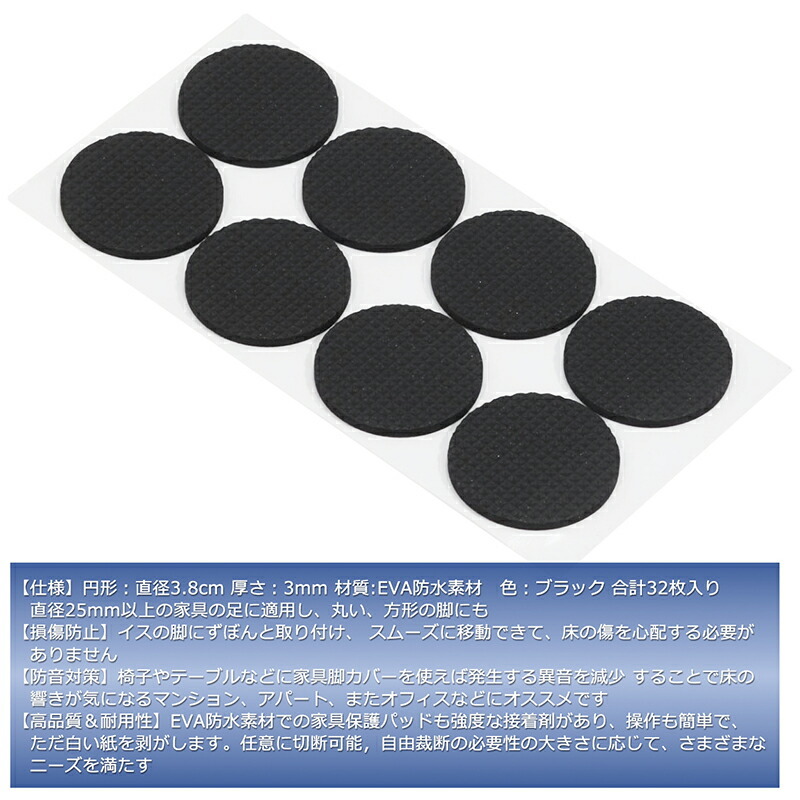素材 色:ブラック 合計32枚入り 直径25mm以上の家具の足に適用し、丸い、方形の脚にも