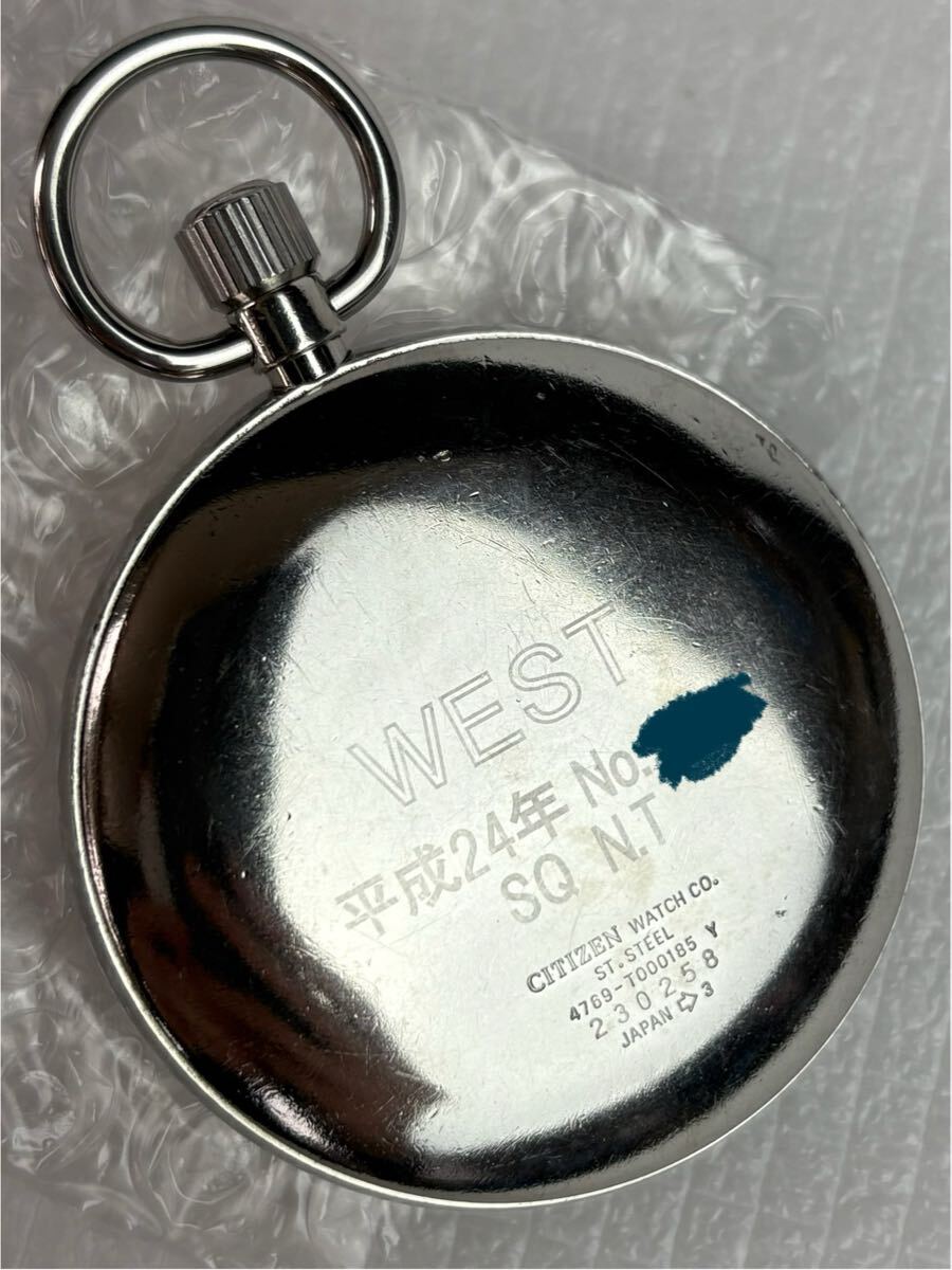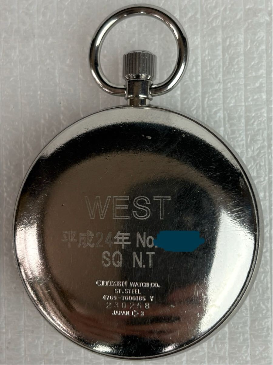 内379 CITIZEN/シチズン 鉄道時計 懐中時計 JR西日本 WEST 平成24年 夜光針 QUARTZ/クォーツ 小型時計 時計 ②