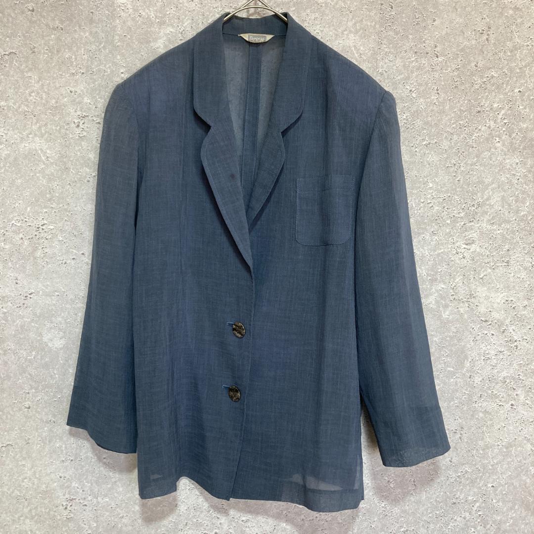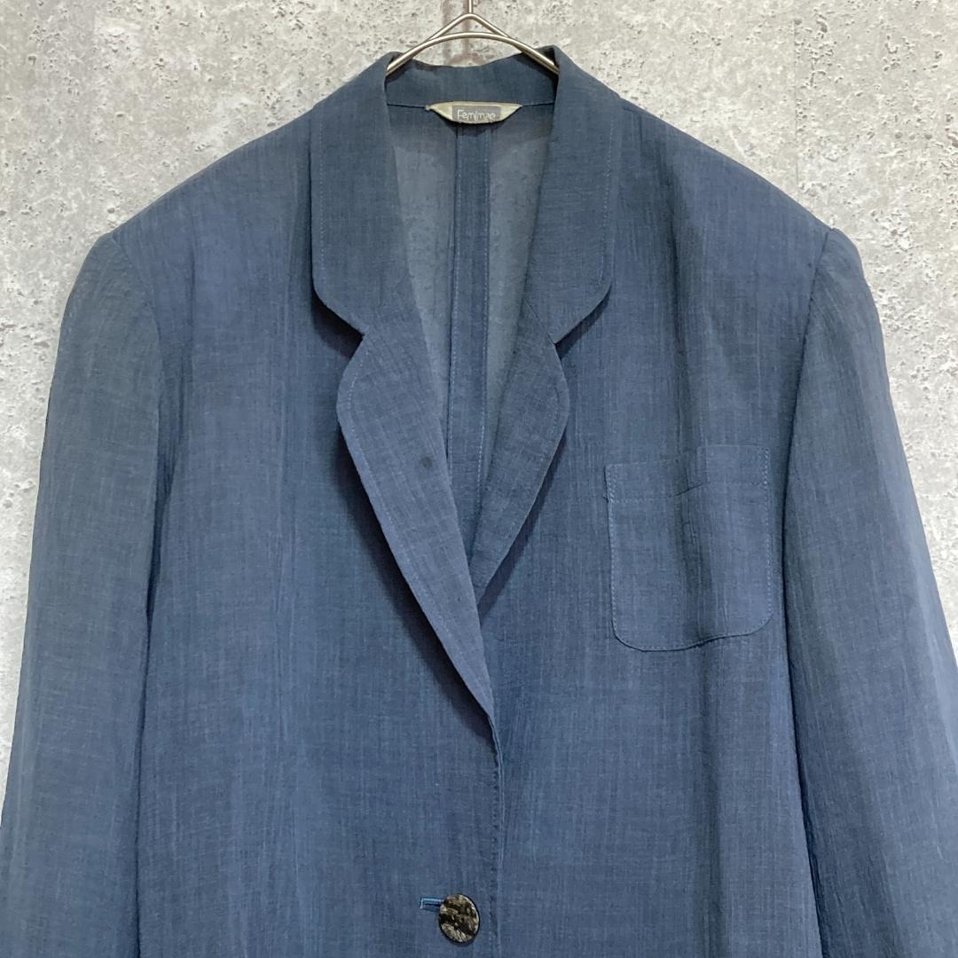 Femimae(one)テーラードジャケット*透け感*胸ポケット*ブルーグレー