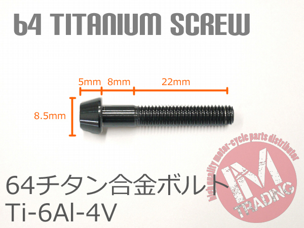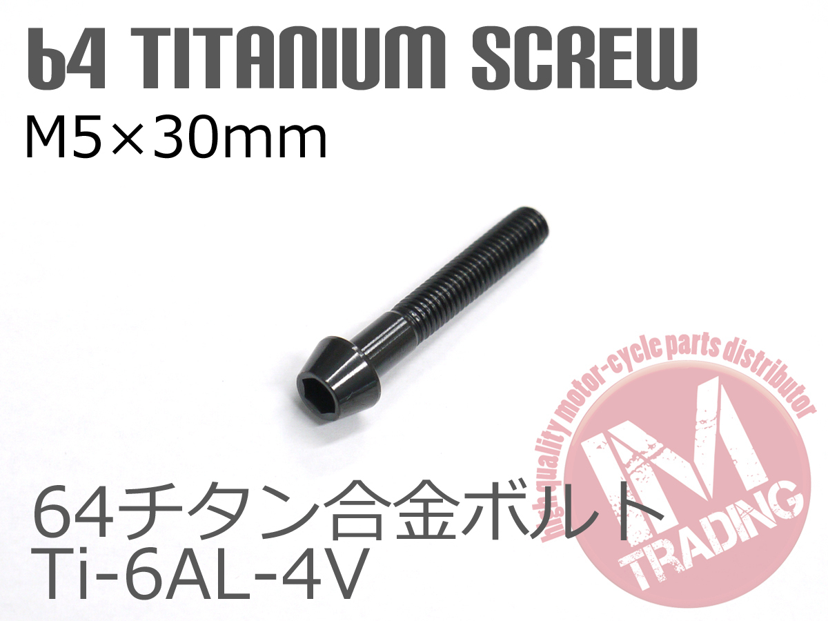 64チタン合金ボルト M5×30mm P0.8 4本セット テーパーキャップ ゆうパケット対応 ブラック 黒 Ti-6Al-4V