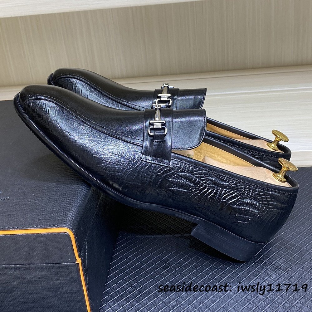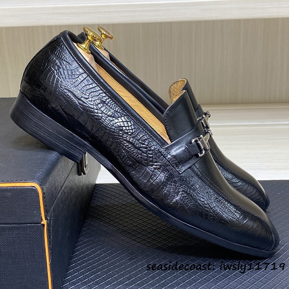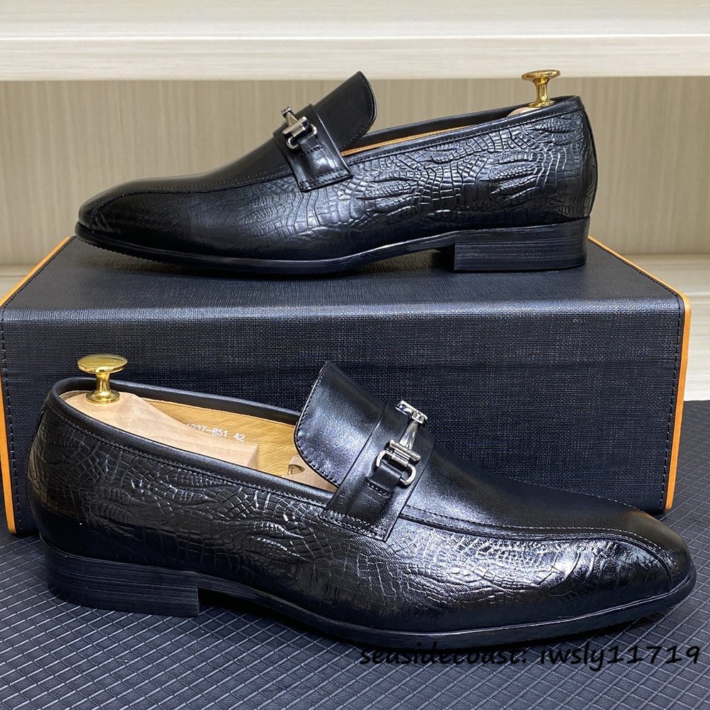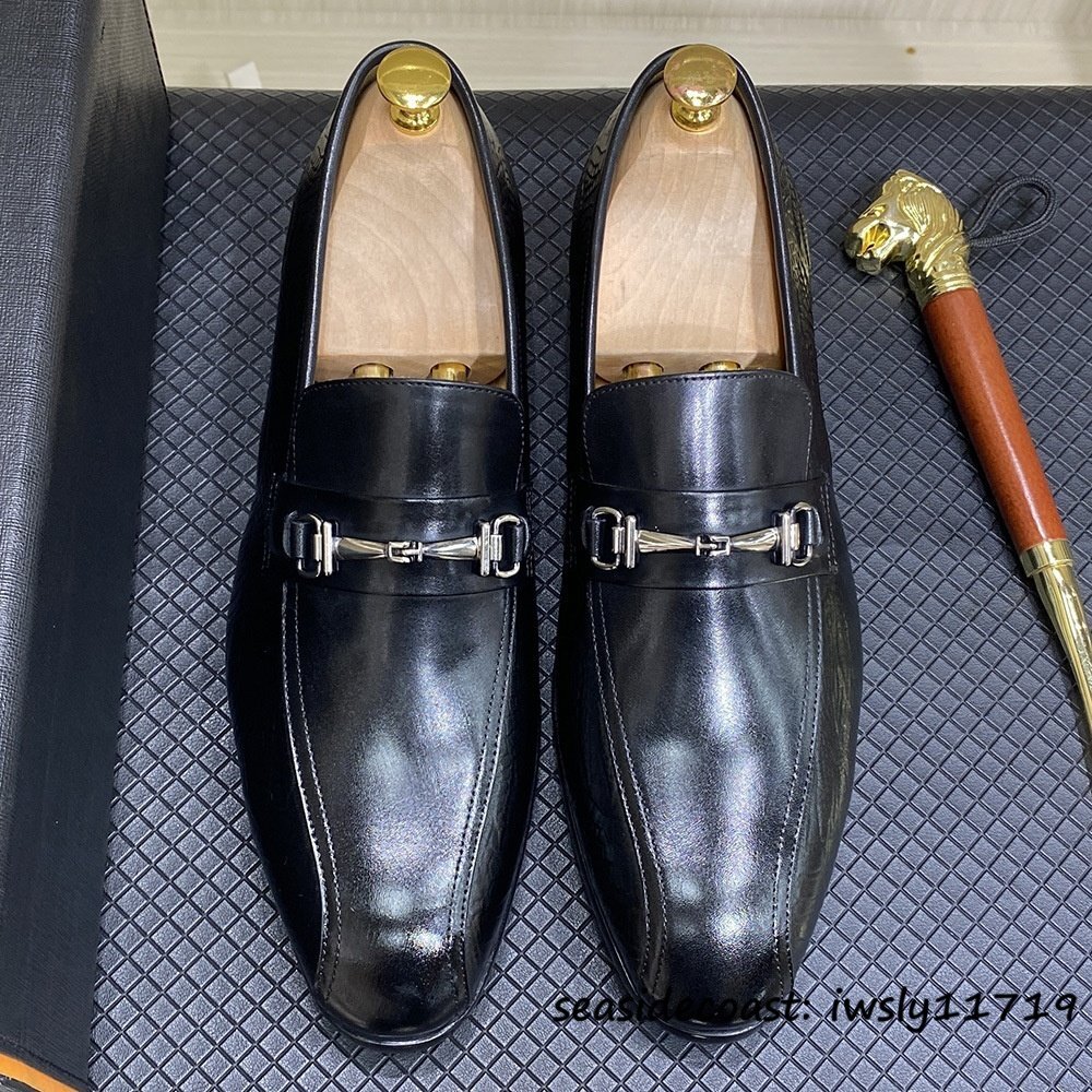 定価10万超★レザーシューズ 革靴 本革 職人手作り ビジネスシューズ メンズ 牛革 ビットローファー スリッポン 紳士靴 ブラック 27.0cm