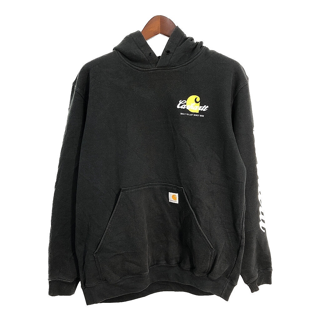 【商品管理番号】 S5469 【ブランド】 Carhartt/カーハート 【サイズ】 L 【実寸サイズ】 肩幅:約54cm 着丈:約71cm 身幅:約61cm 袖丈:約65cm 【主な素材】 表地 : コットン 【色】 ブラック 【仕様】 フードドローコード 袖プリント 【状態】 特記事項:使用感あり、ドローコード欠損 |