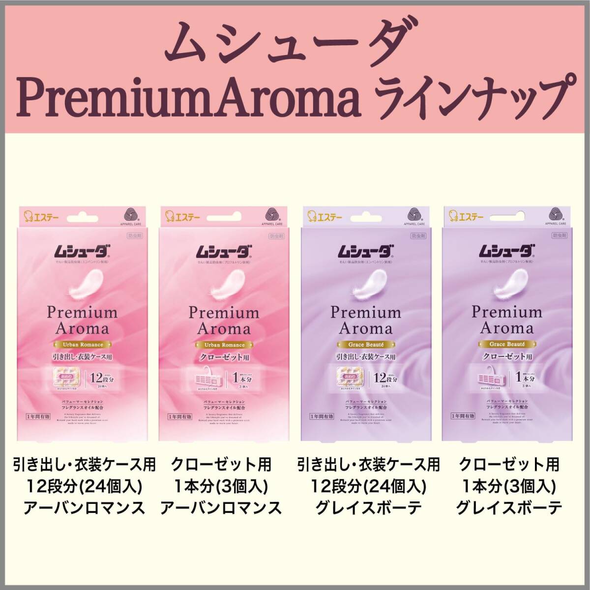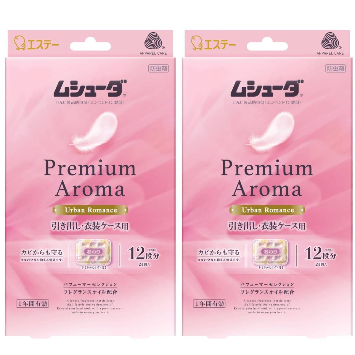 ムシューダ プレミアムアロマ [まとめ買い] 衣類用 防虫剤 香り付き 防カビ剤配合 引き出し 衣装ケース用 アーバンロマンス 24個入×2個