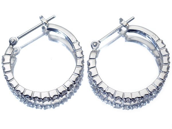 1円~【ジュエリー極】フープデザイン輝く!天然ダイヤモンド1.00ct 高級Pt900フープピアス k681kk【送料無料】