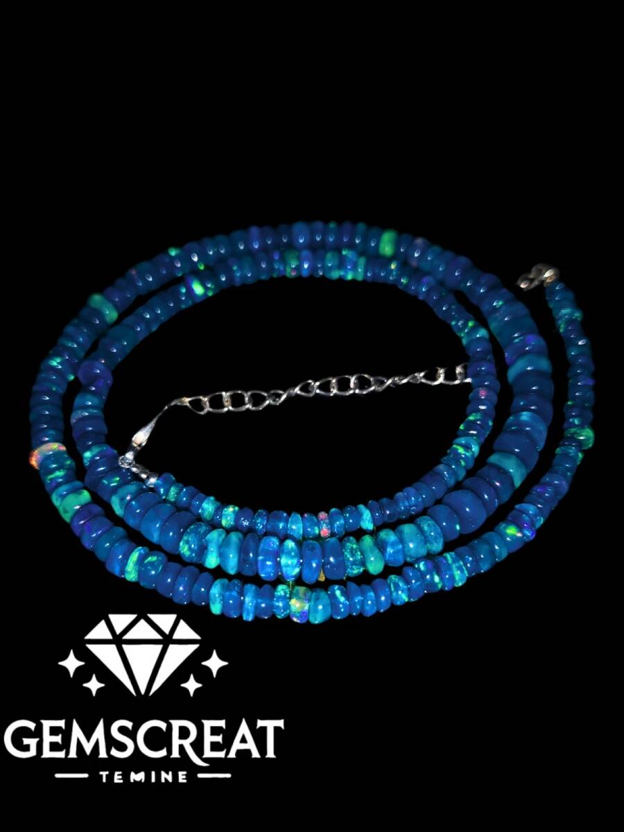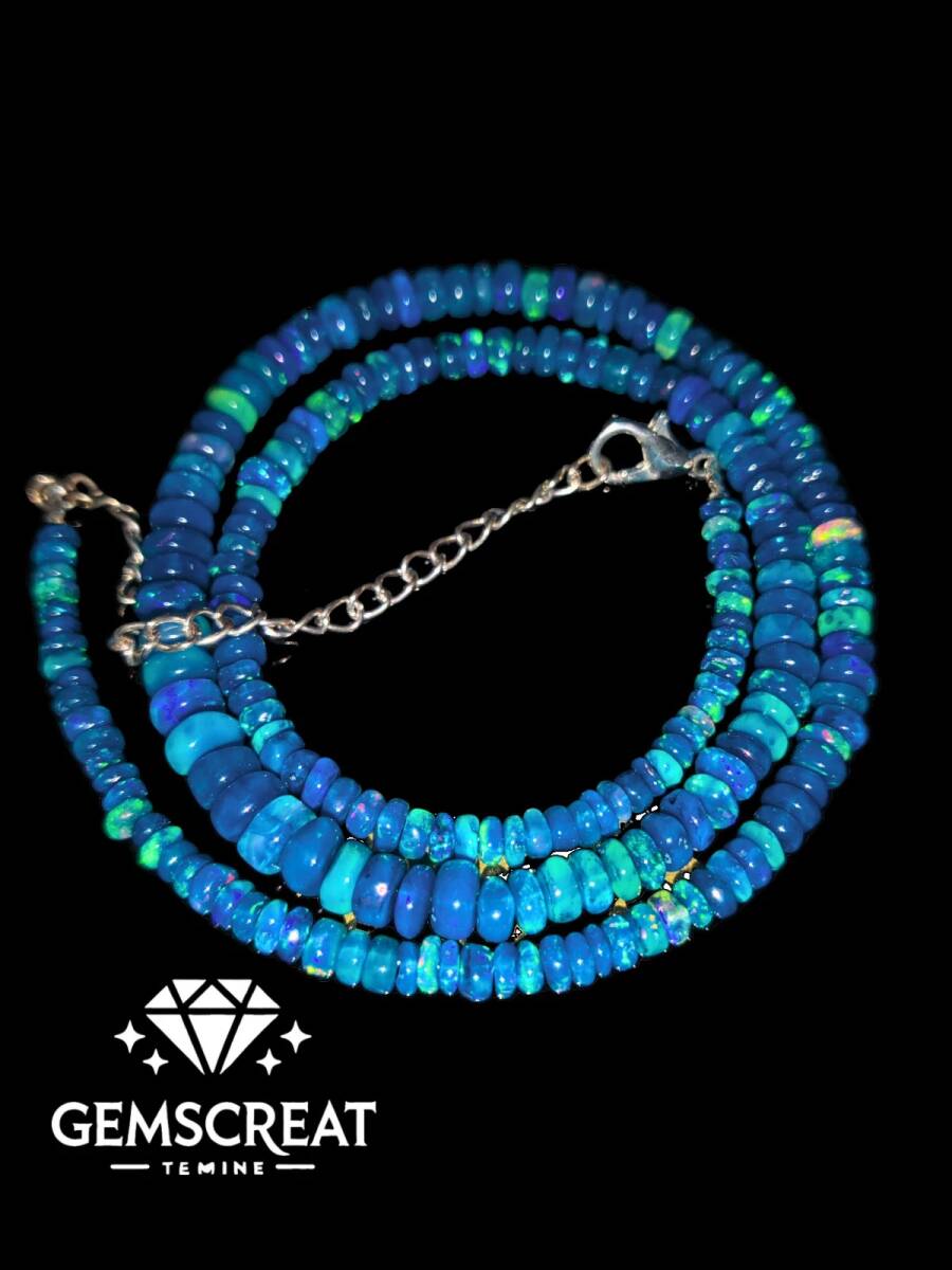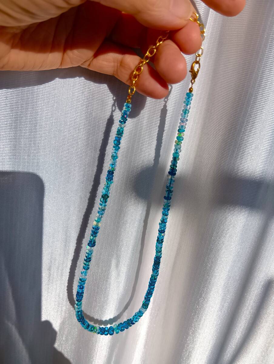 オパール ネックレス 首飾り 手元に有り。珠部46㎝全長51㎝ 天然エチオピアオパール ウェロファイアオパール 宝石40カラット珠3〜6㎜
