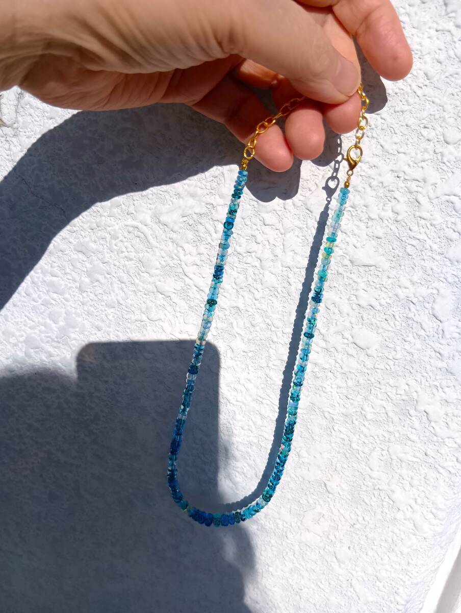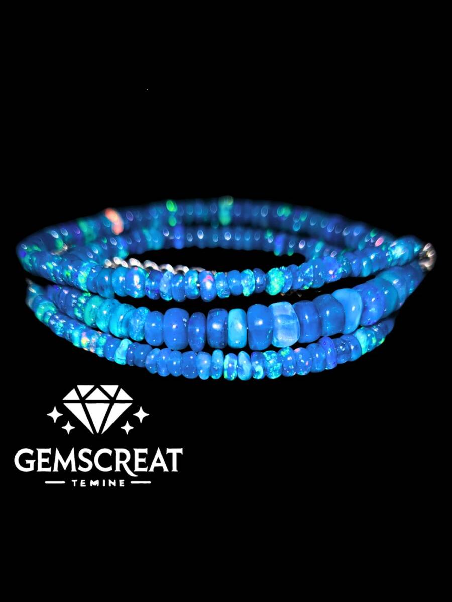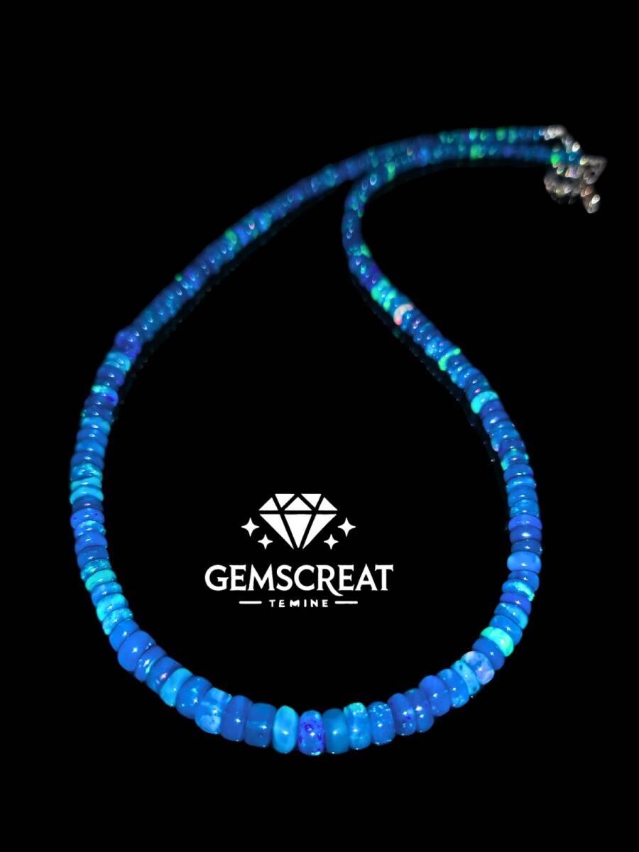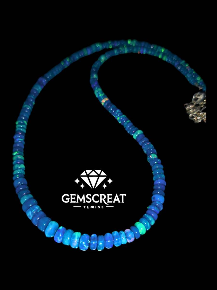 オパール ネックレス 首飾り 手元に有り。珠部46㎝全長51㎝ 天然エチオピアオパール ウェロファイアオパール 宝石40カラット珠3〜6㎜