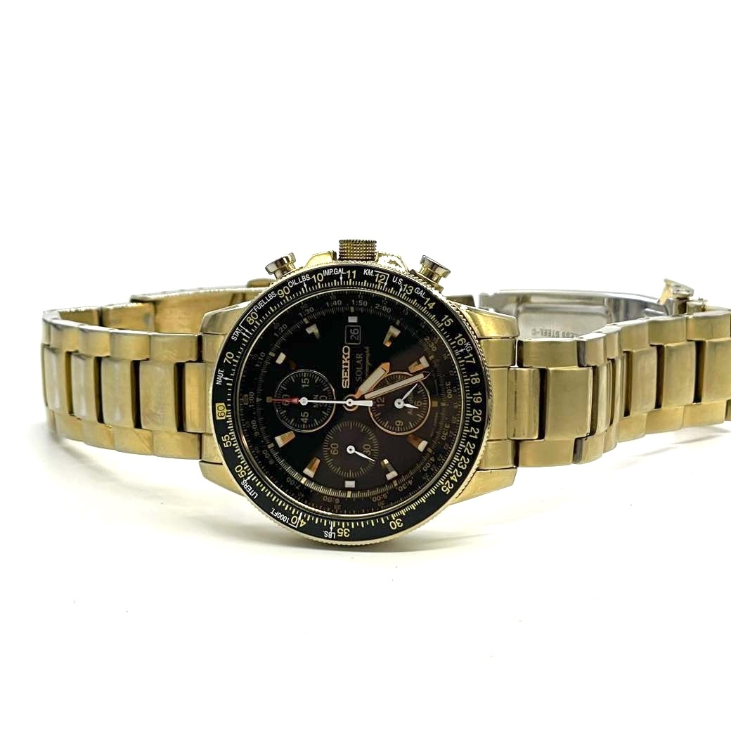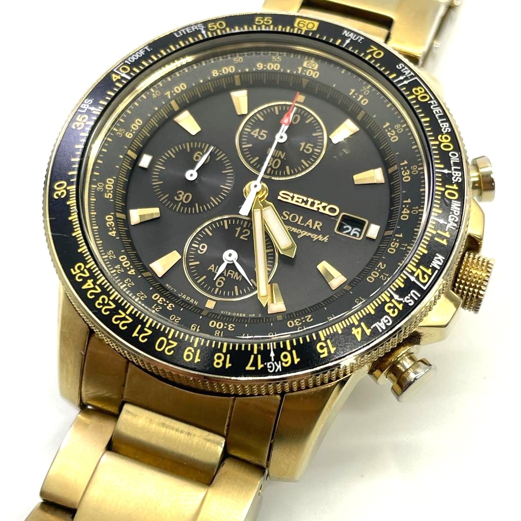 SEIKO セイコー 稼働 プロスペックス スカイプロフェッショナル ソーラー腕時計 アナログ V172-0AC0 ゴールド #A3523