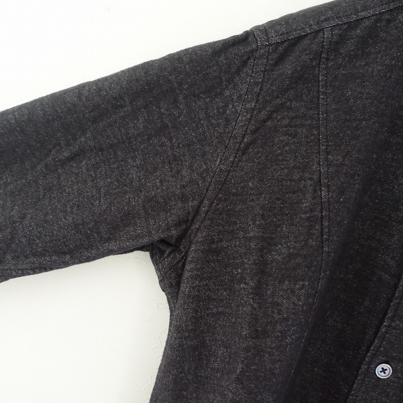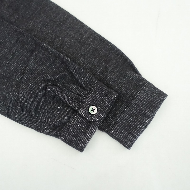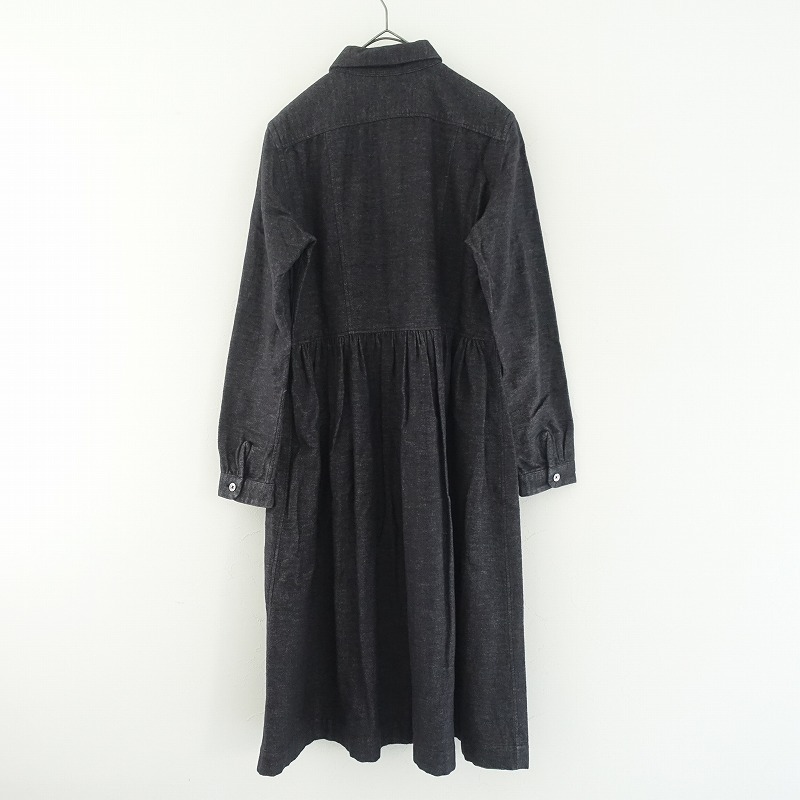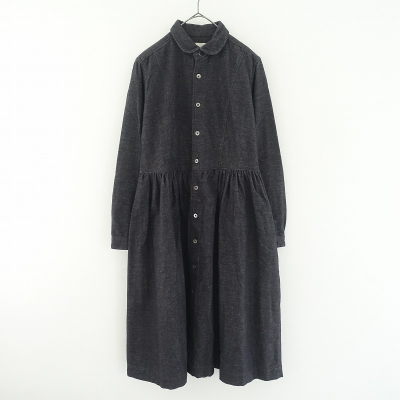 MORIKAGE SHIRT KYOTOのフランネル丸衿ワンピースです。カラーは黒杢です。柔らかく、程よい厚みがあり、起毛を配したコットンフランネル生地を使用。フロントボタン開きのシャツワンピースで、ウエストに切替ギャザーが施されております。ポケットはございません。 |
