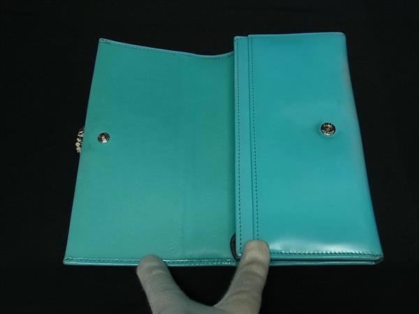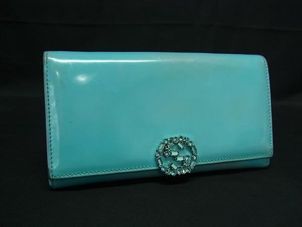 1円 GUCCI グッチ 369670 GGスパークリング パテントレザー カラーストーン 二つ折り 長財布 ウォレット ライトブルー系 FR2379