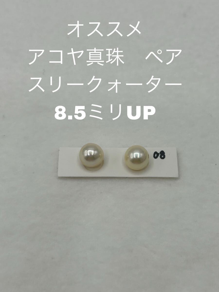 オススメ テリ花珠クラス アコヤ真珠ペアルース スリークォーター 8.5ミリUP 08を出品致します