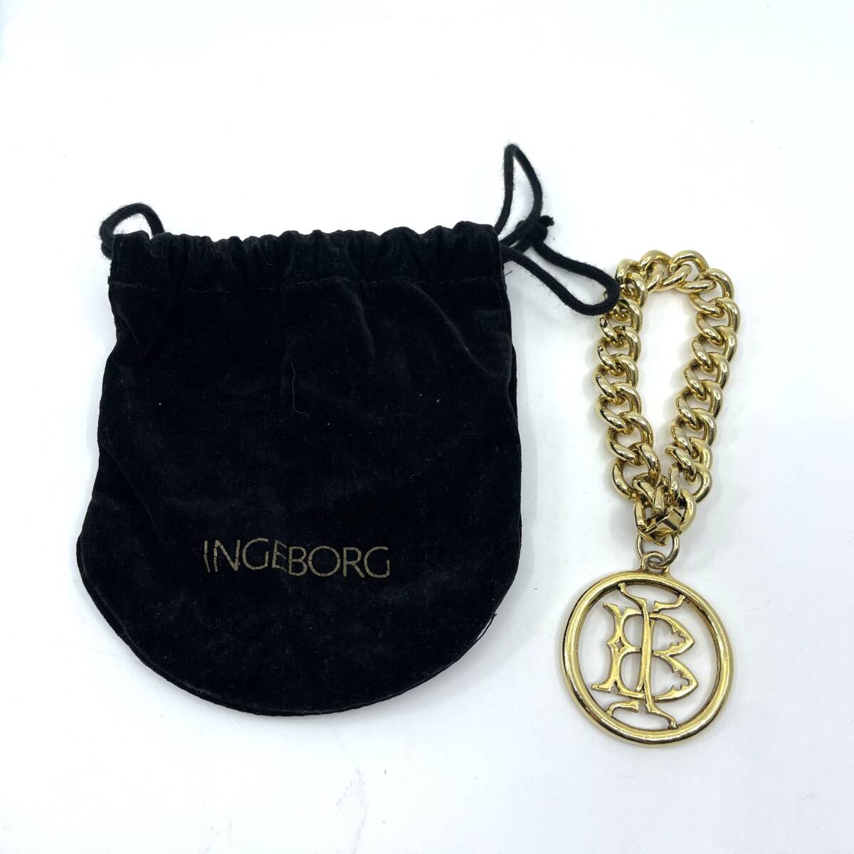 INGEBORG インゲボルク チェーンブレスレット バッグチャーム ロゴ金具 ゴールド 大ぶり トップ直径 約4.3cm
