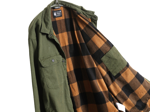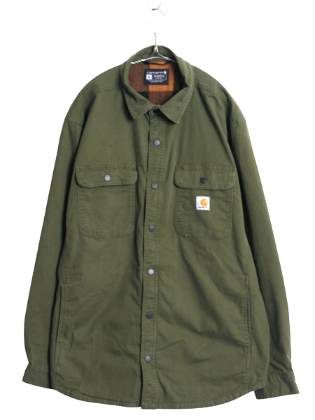 商品名 | US企画 カーハート コットン キャンバス シャツ ジャケット メンズ XL 古着 フリース ライナー付き ストレッチ ワーク 大きいサイズ カーキ |