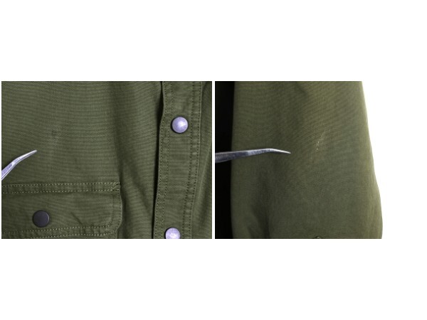 商品について | 一見して分かる目立つヨゴレやダメージは商品画像や商品説明に記載はしていますが 着用に支障が無いと判断した物や裏側等の着用時見えない場所、古着慣れされている方 なら問題無い範囲内と判断したヨゴレ、小さなダメージの説明は省いている場合があります。 (その様な場合でもこちらの判断で良品、美品と記載している物もあります) 見えない場所や細かいヨゴレ、ダメージの気になる方はご購入前に必ずご相談下さい。 サイズについては多少の誤差はご了承願います。 撮影時の光や環境、ご使用のブラウザによって実際の色と異なる場合があります。 写真と商品説明文を確認して、少しでも気になる点があれば必ずご入札前にご質問下さい。 |