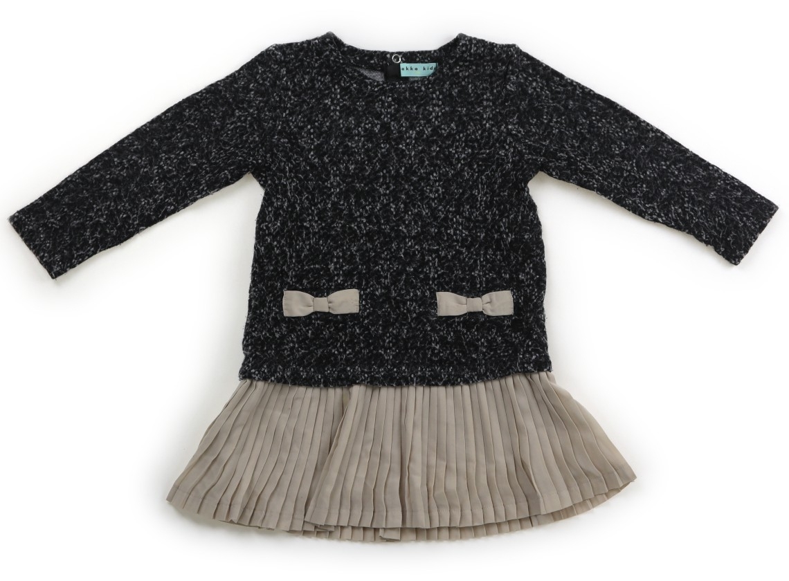 綿ナイロンニット生地にスカートはポリエステル。スカートやリボンに毛玉付着、スカート前部分に黄色いシミあり。外遊び用にいかがでしょうか。