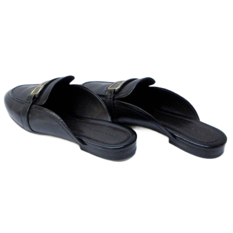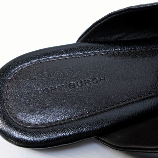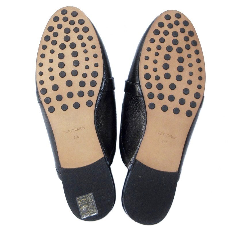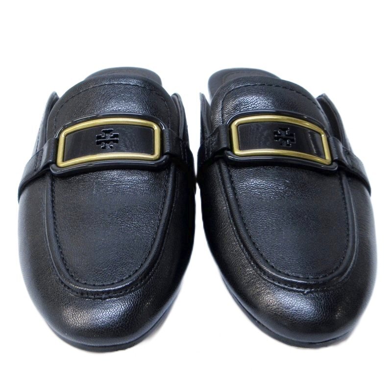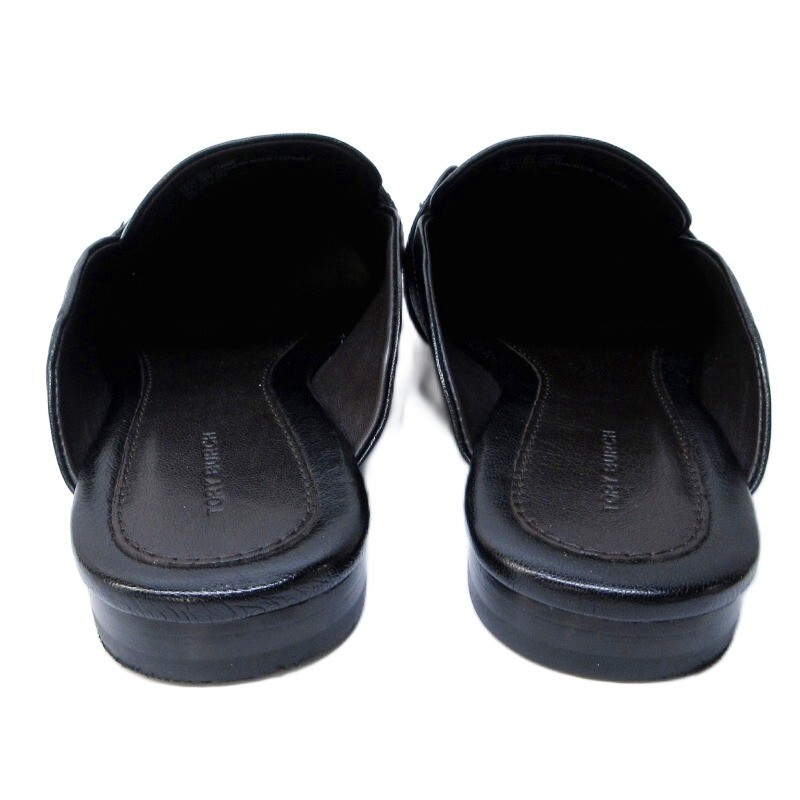 トリーバーチ TORY BURCH 美品 ローファーサンダル ミュール ロゴプレート レザー 8M 約25cm 黒 ブラック IBO79 0906 レディース