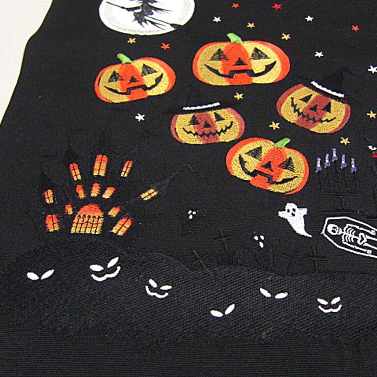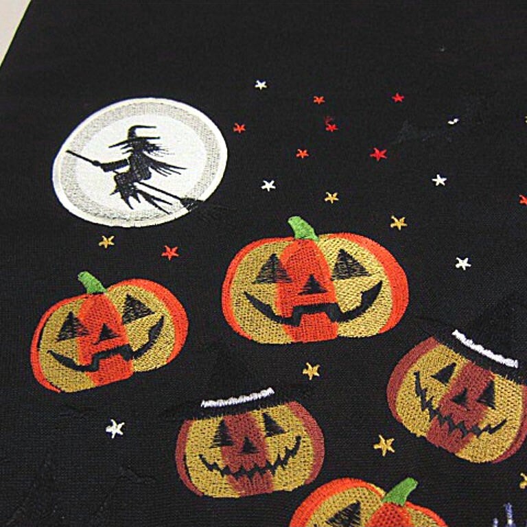 ハロウィン 逸品 新品未仕立 豪華 西陣織刺繍九寸名古屋帯 ハロウィン かぼちゃ コウモリ おばけ お菓子 黒地