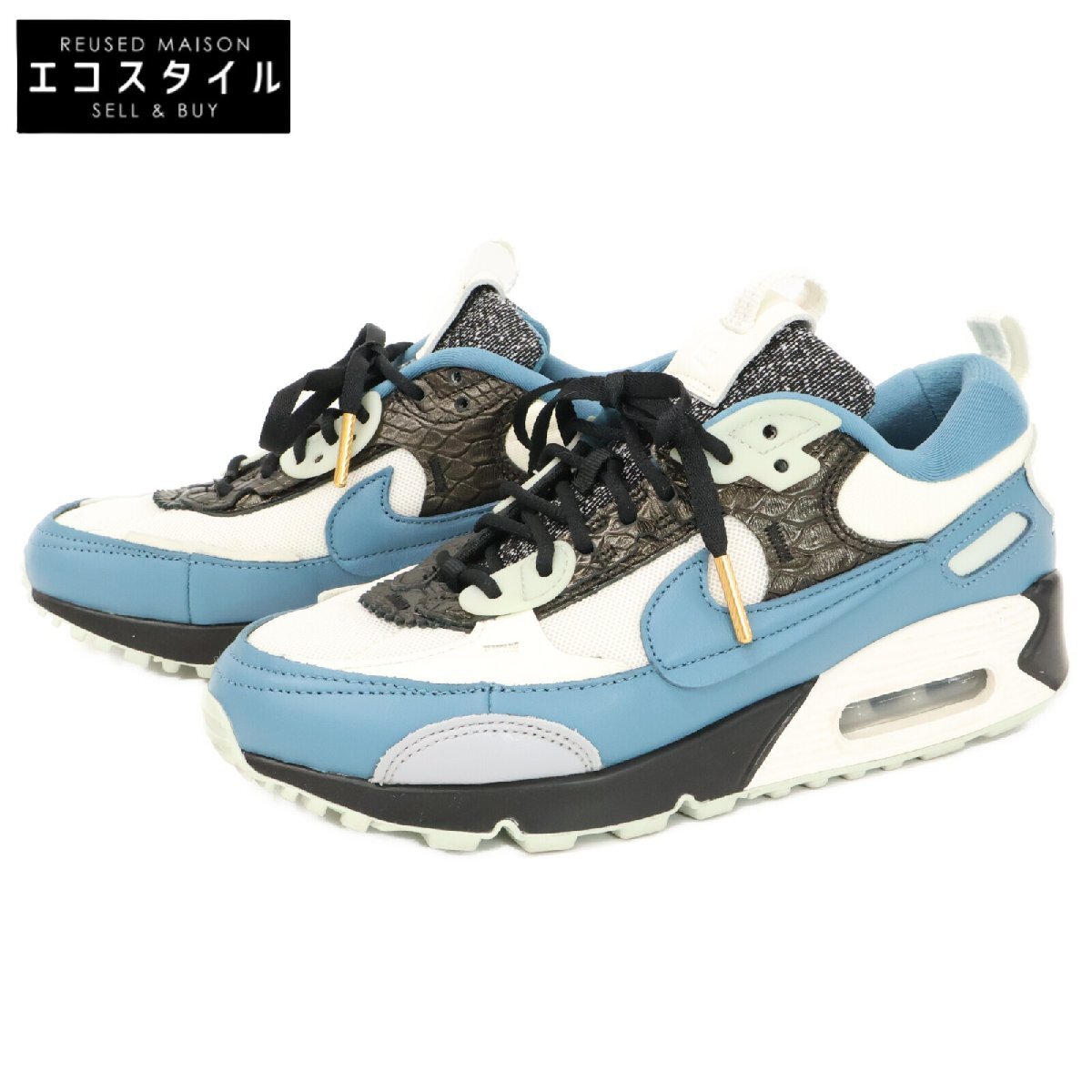 美品 NIKE ナイキ DX5047-900 AIR MAX90 カスタム 型押し スニーカー 24.5cm ホワイト/ブルー/ブラック メンズ