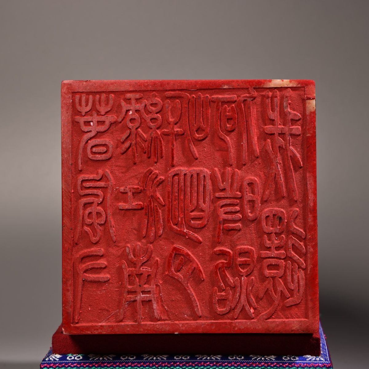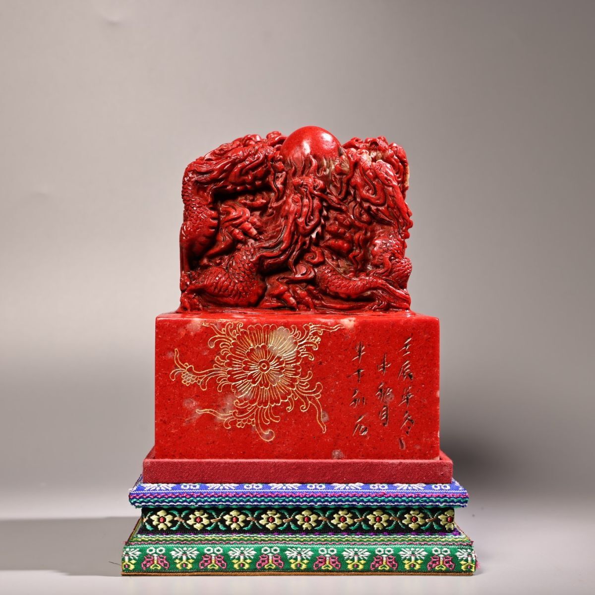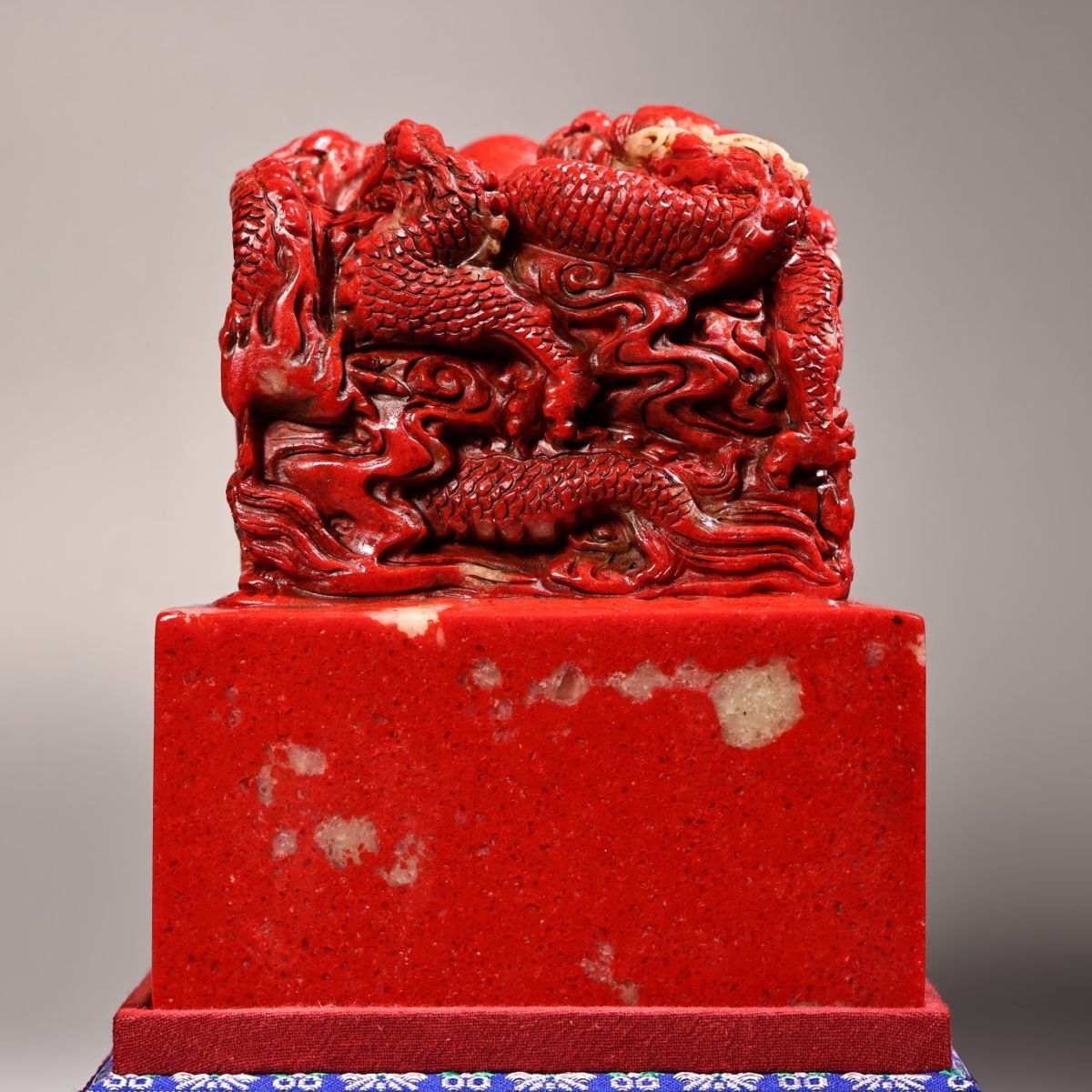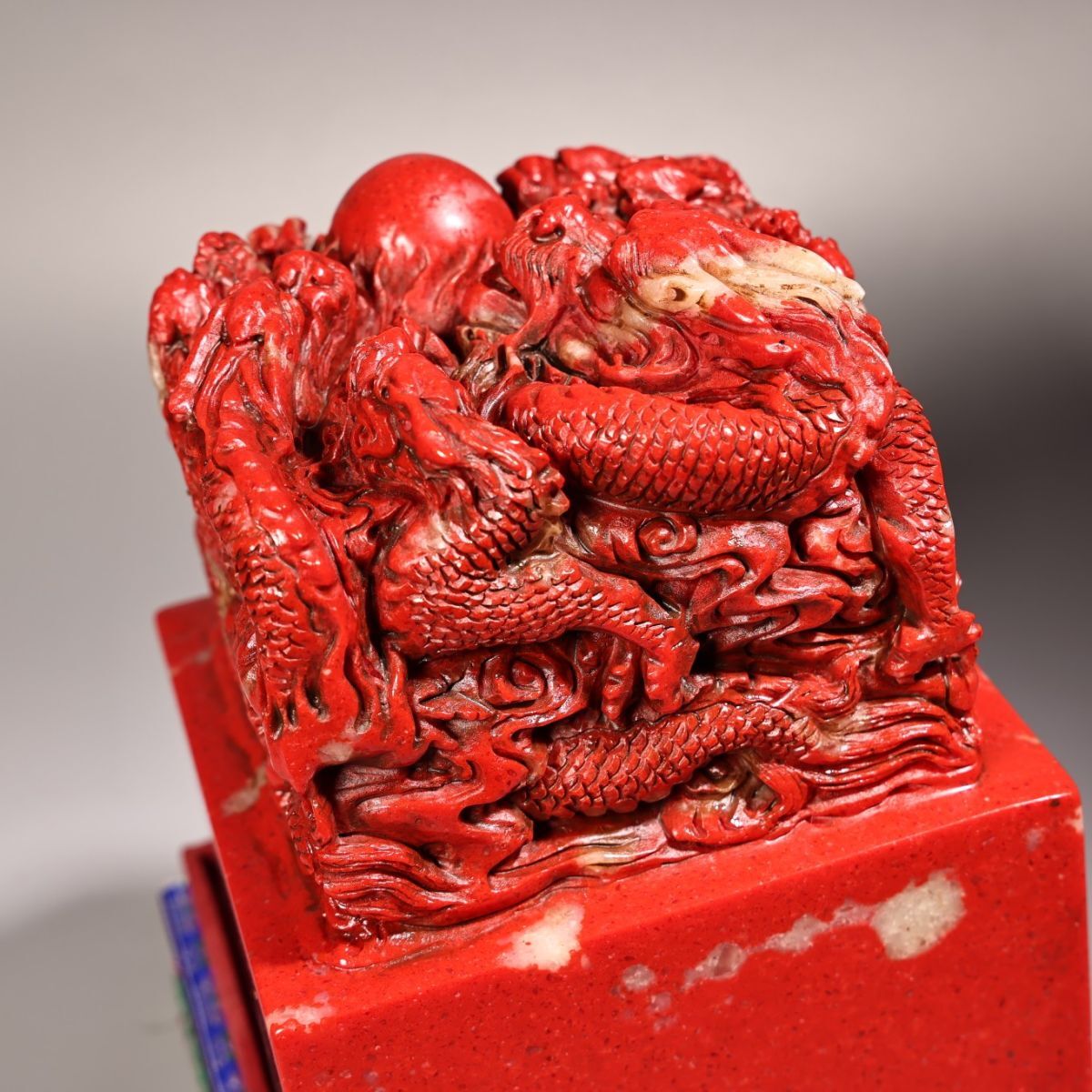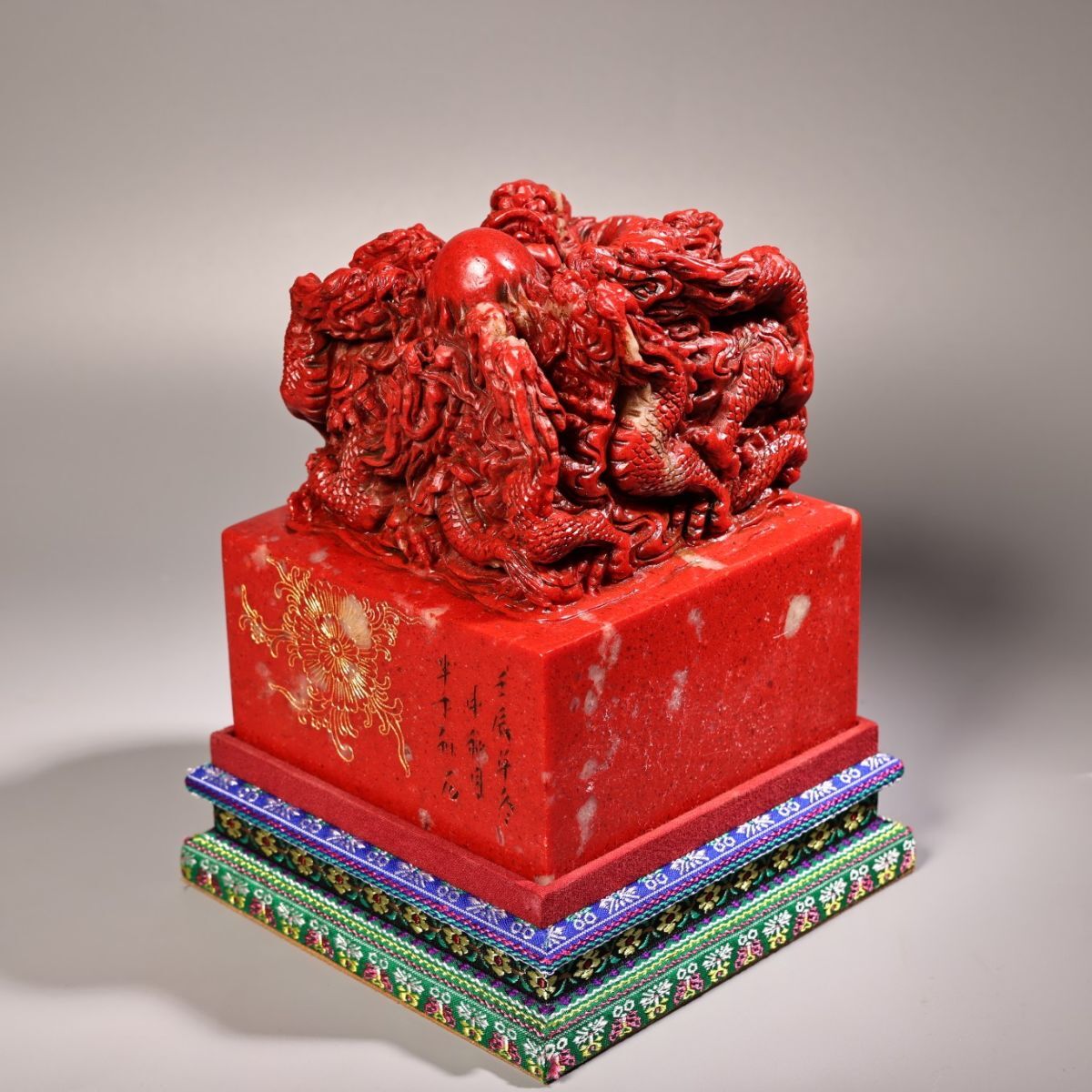 永し 清時代 大紅袍 鷄血石彫 九龍戲珠鈕 手彫り 印章 印鑑 印璽 極細工 置物擺件 古美術品 時代物 古董品 収集 古美味 旧家蔵出 中国唐物