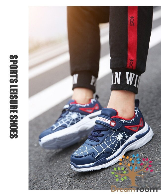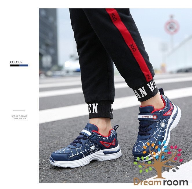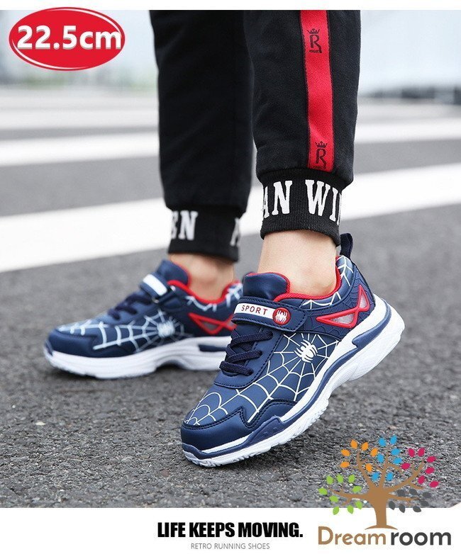 1スタ☆スムース素材 スパイダー デザインスニーカー 【紺・ネイビー 22.5cm】 韓国子供服 キッズ シューズ 子供用 男女