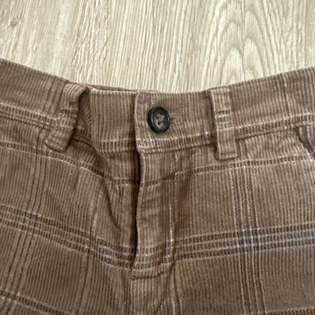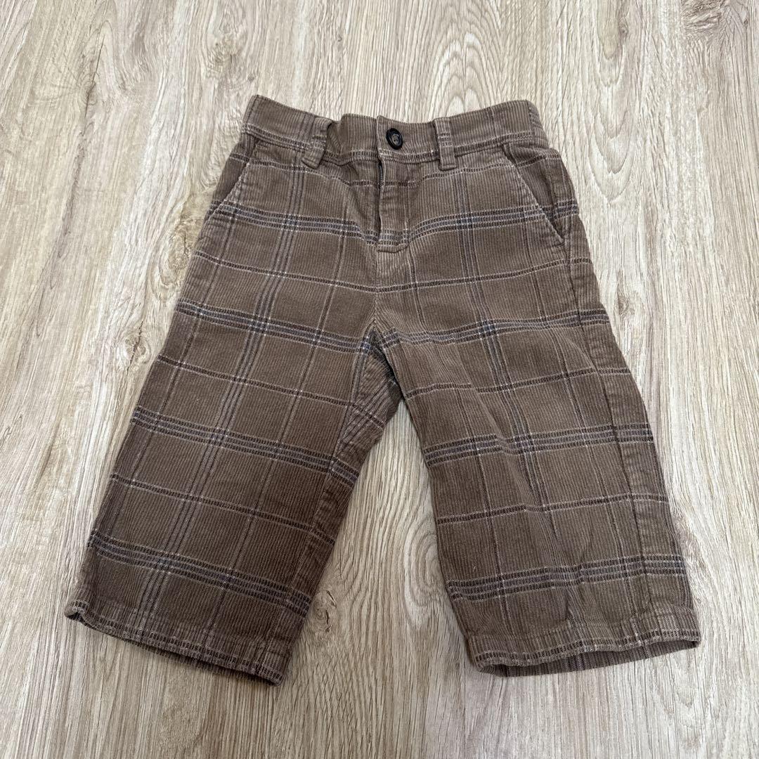 100%コットン製のブラウンチェック柄ボトムス、6〜12ヶ月用。