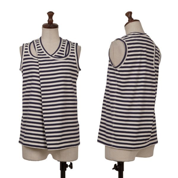 ジュンヤワタナベ コムデギャルソンJUNYA WATANABE COMME des GARCONS 変形デザインボーダータンクトップ 紺オフS |