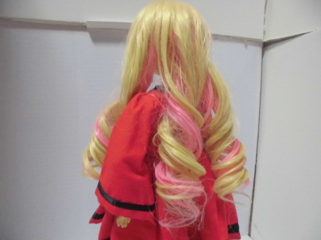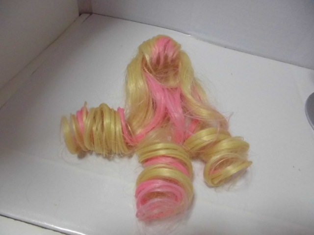 ツートンカラーのドール用ウィッグ。金髪と蛍光色に近いピンクです。内側がピンク。 縦ロール3個。
