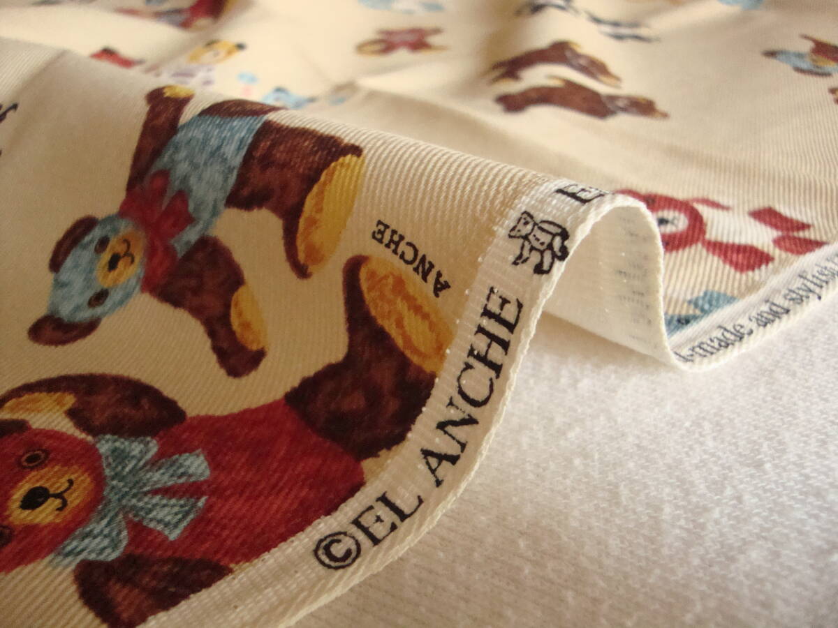 KOKKA EL ANCHE エルアンシュ オックス W110×100cm ベージュ くま テディベア 綿 プリント 生地 はぎれ 日本製 1m