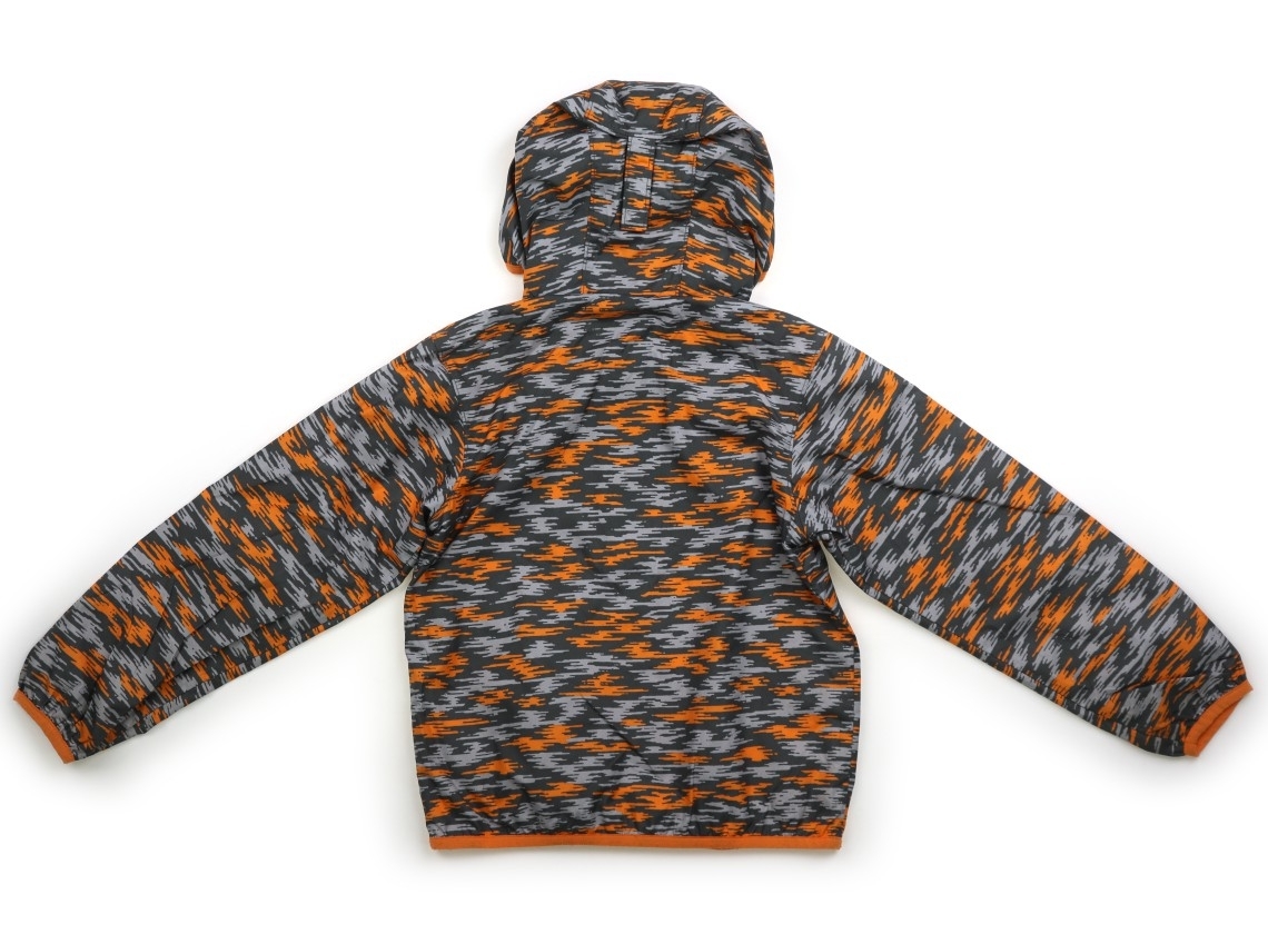 ポリエステル素材。微起毛素材の裏地付き。フードは縫い付けです。実際のサイズ表記は、XS(6/7)。パイピングに毛玉感があります。