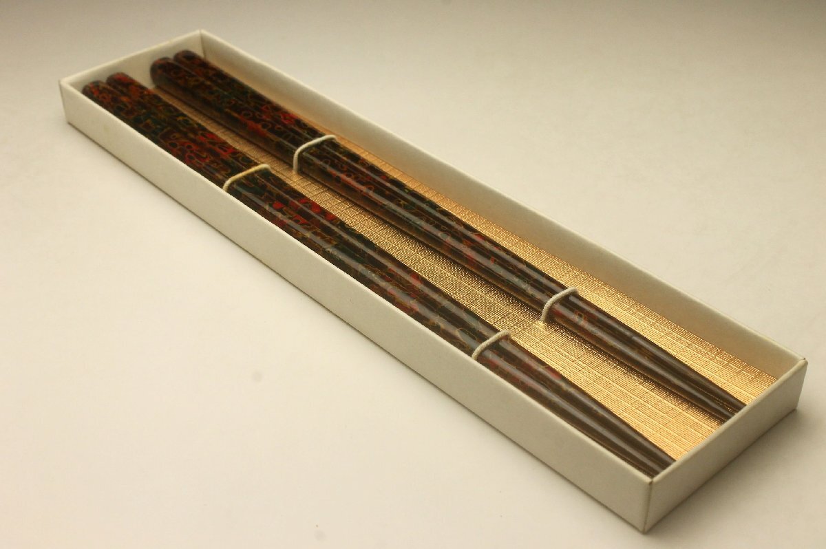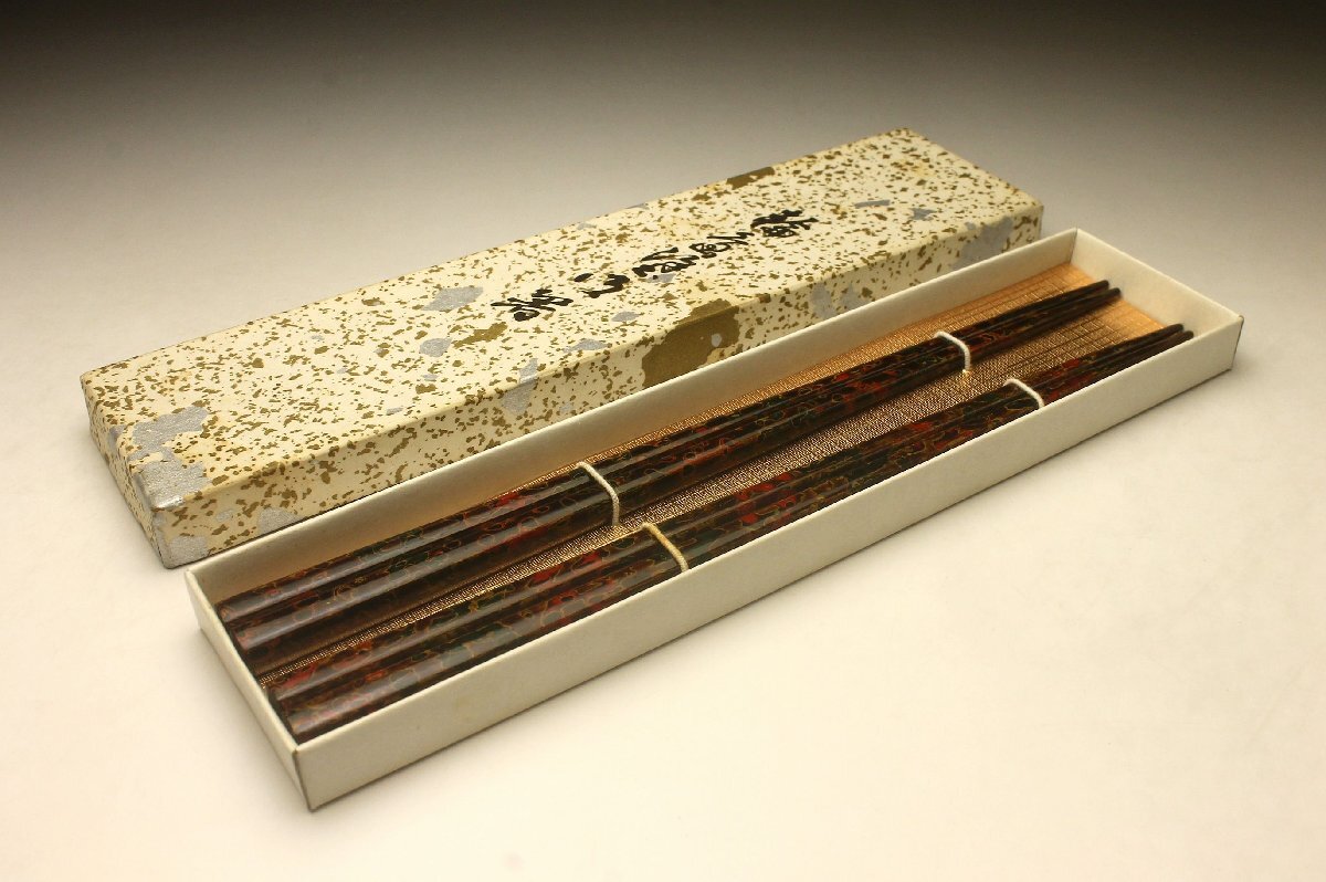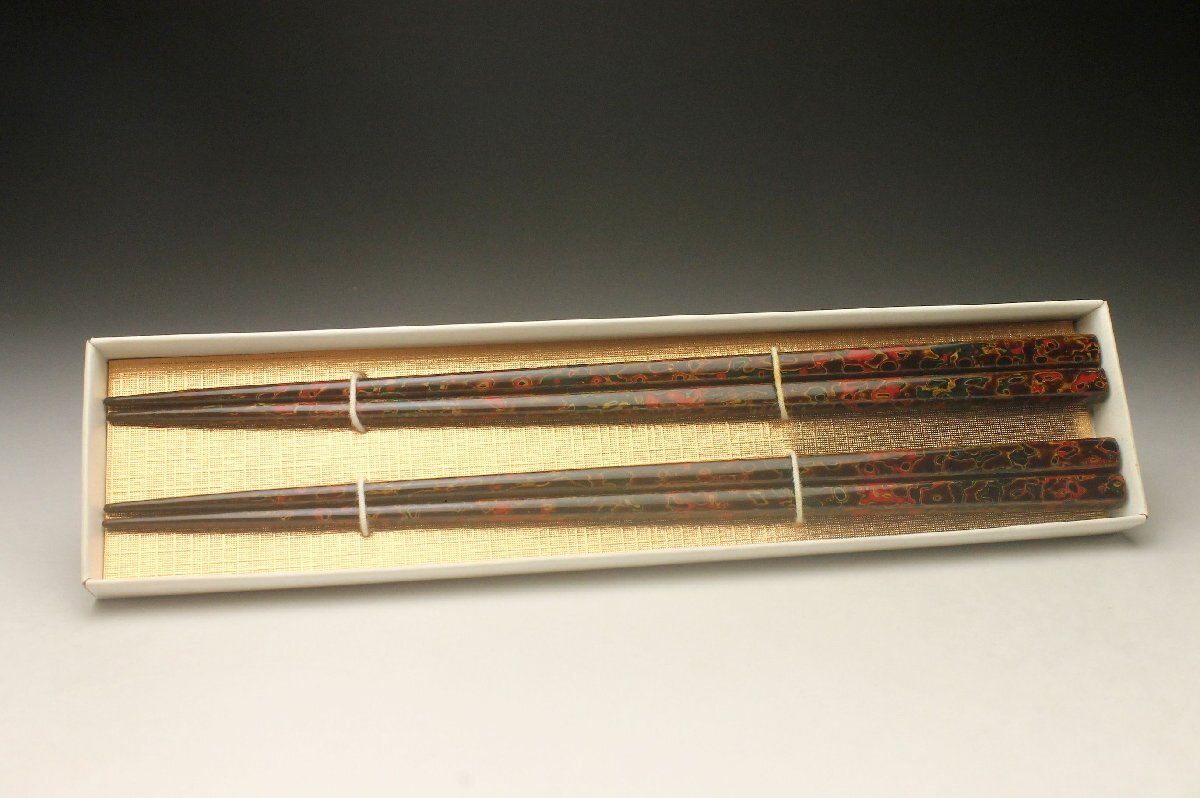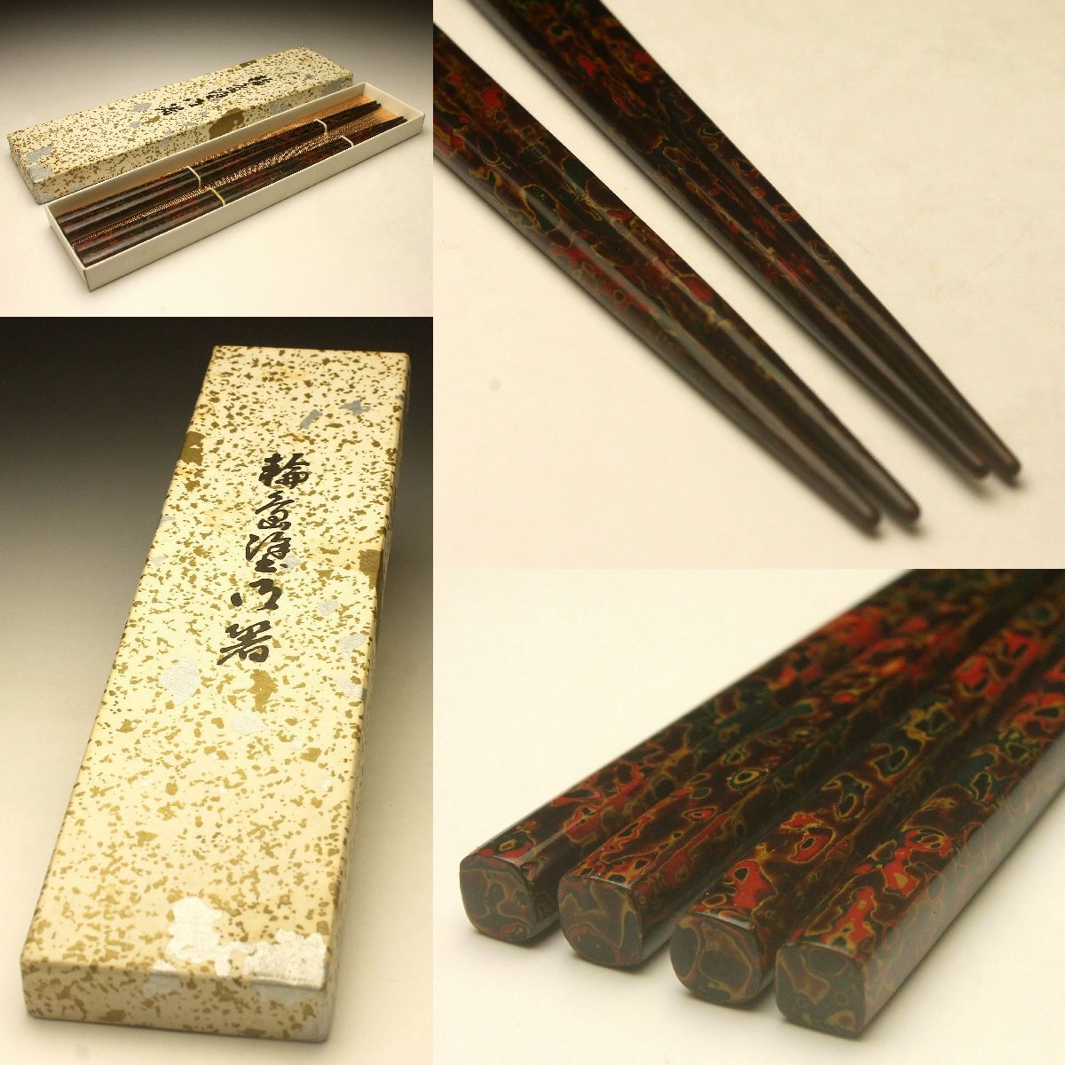 【余韻】 輪島塗 天然木製 夫婦箸2膳 紙箱入★未使用品 無傷美品<同梱可>