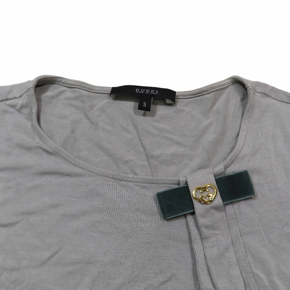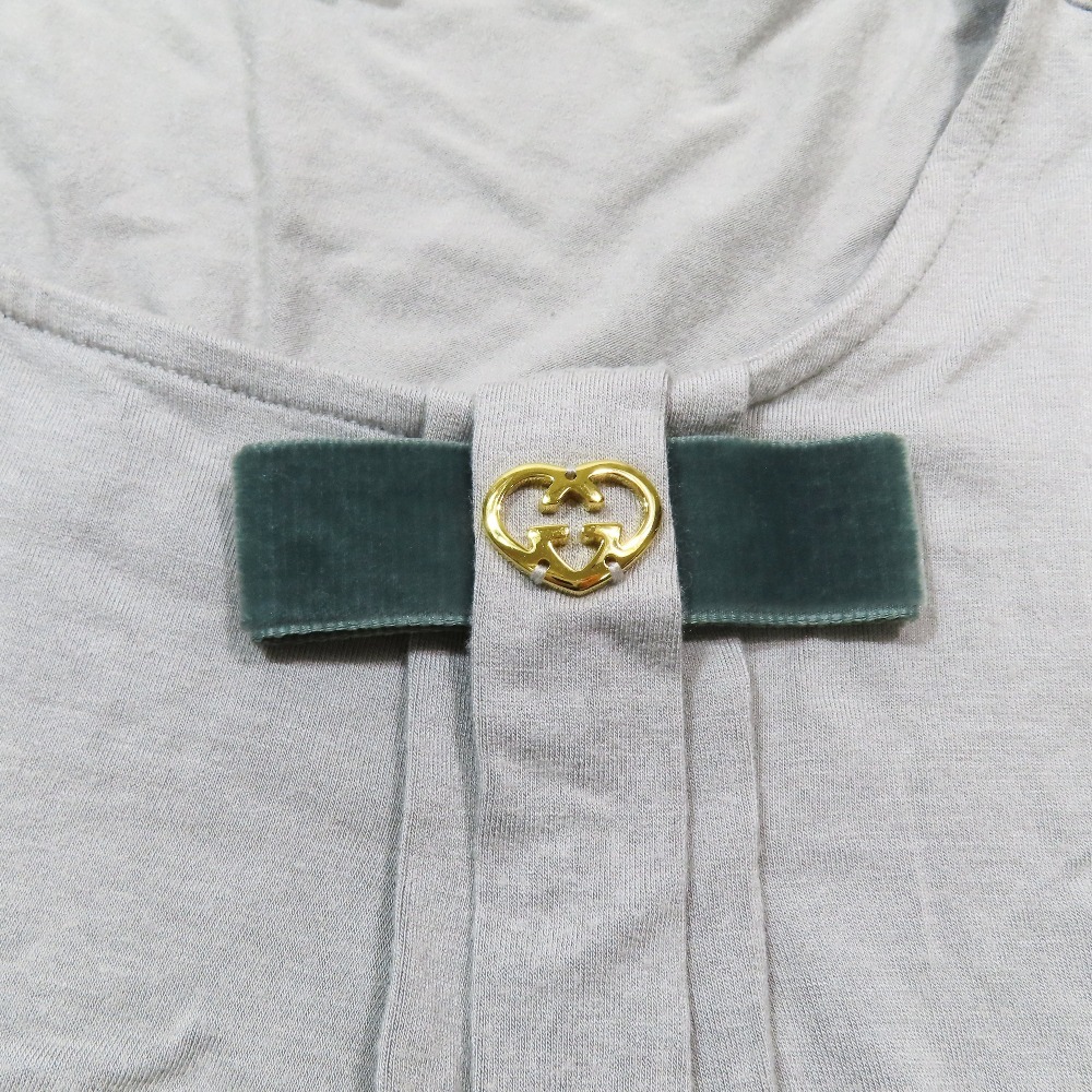 良品 GUCCI グッチ インターロッキングGハート 半袖 Tシャツ ラウンドネック ストレッチ カットソー S グレー
