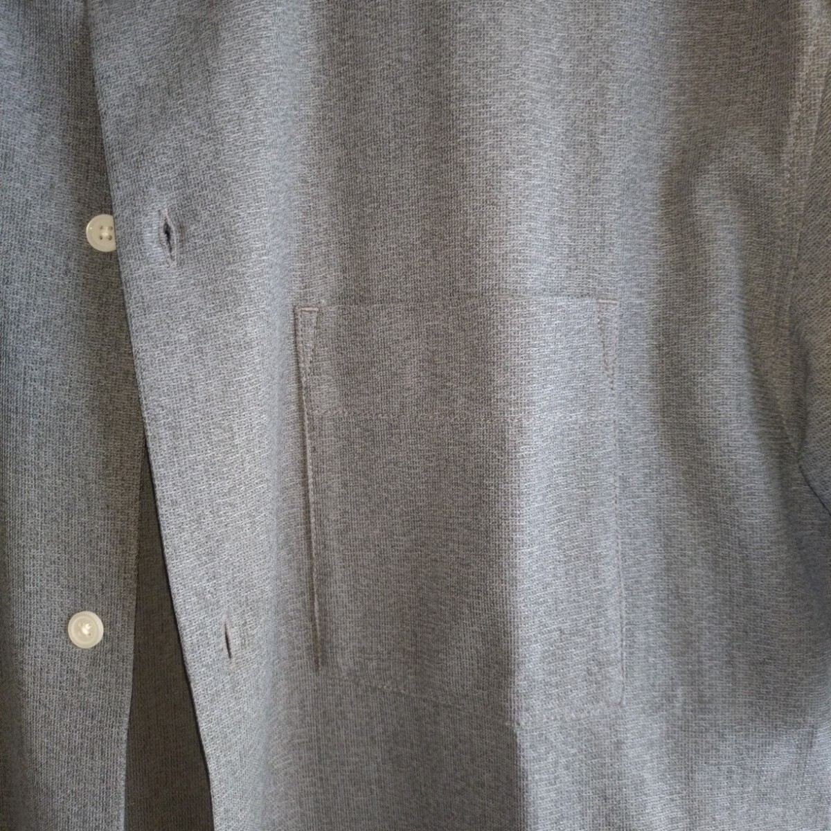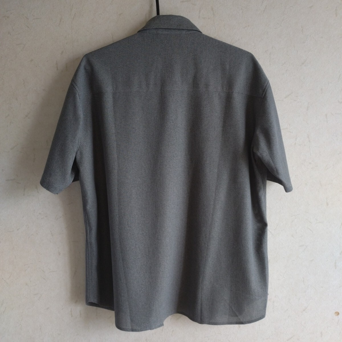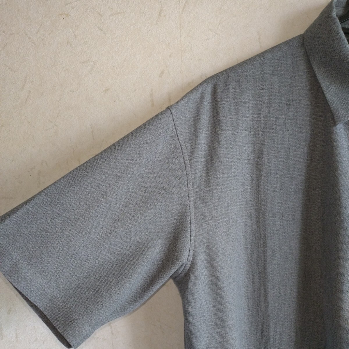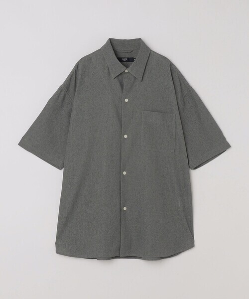 グレーの半袖シャツ、SHIPS製、Sサイズ、ポケット付き。ビッグシルエットのポリエステルのメッシュ素材でかつ洗濯できてシワがつかないシャツです。