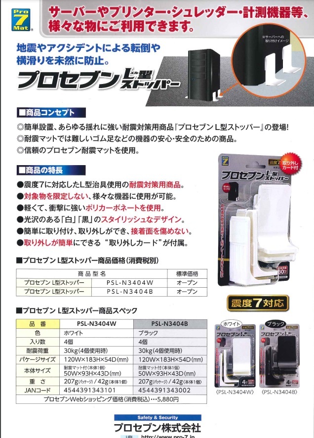 【4個入り/地震対策/耐震度7】 プロセブン L型ストッパー 耐震ストッパー ブラック