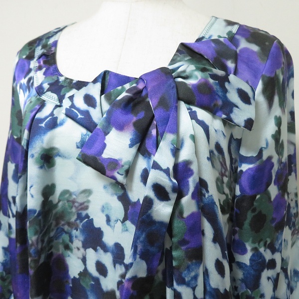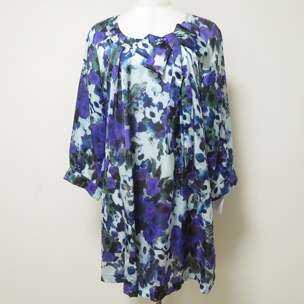 ●商品名(タイトル):#anc インゲボルグ INGEBORG チュニック カットソー 11 緑系 紫 花柄 リボン 薄手 レディース [962871]