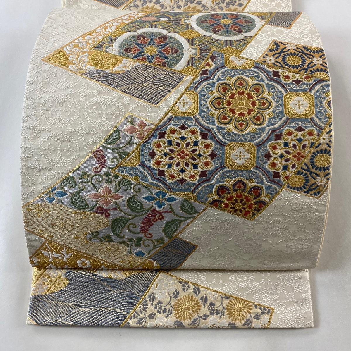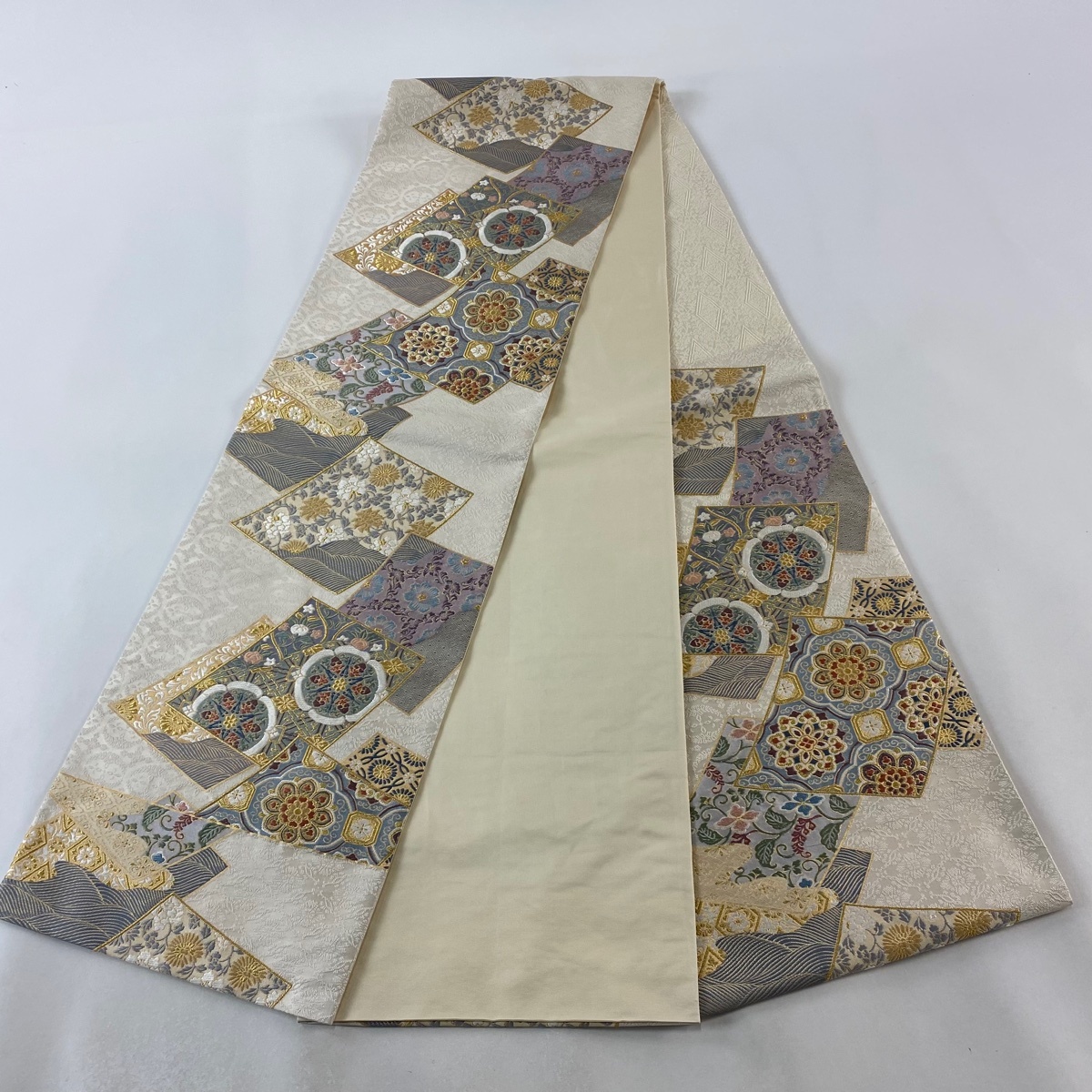 | 袋帯 美品 秀品 献華秀錦文 金糸 クリーム 六通 正絹 【中古】 |