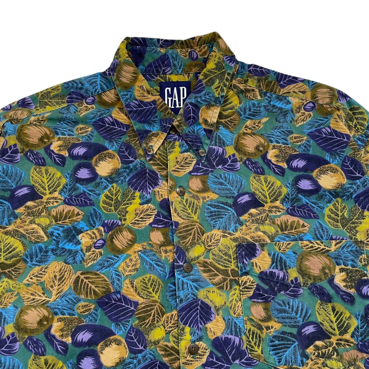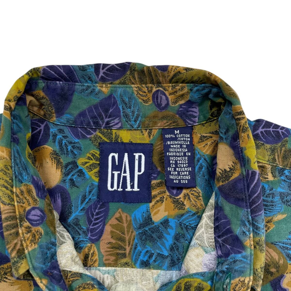 90s オールドギャップ GAP リーフ 総柄 ボタン シャツ 長袖 サイズ M