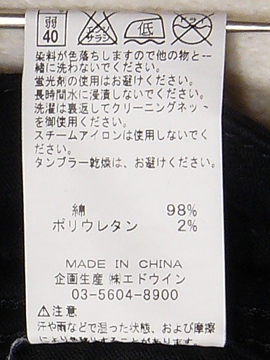 ☆エドウイン(EDWIN)製造 C17 レディースデニム カラージンズ ブラック C303