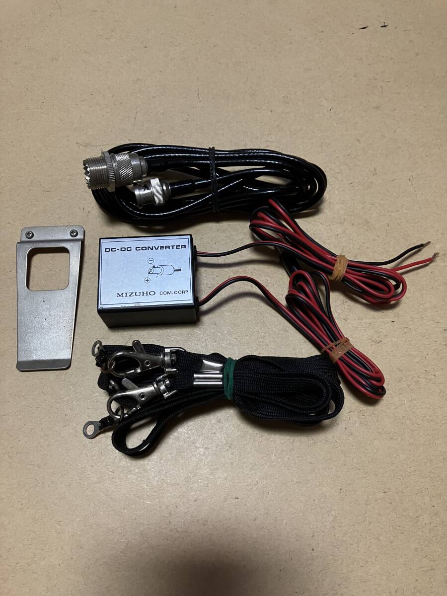 DC-DCコンバータ―、ベルトクリップ、ショルダーストラップ、BNC/Mコネ変換ケーブル(全長2m)一式です。