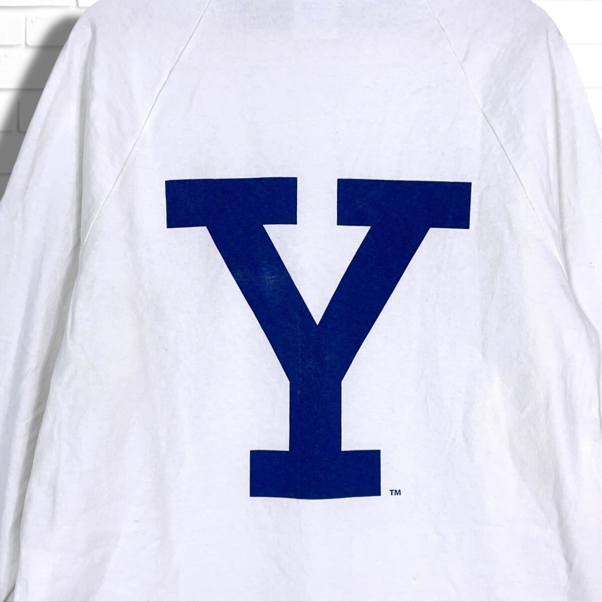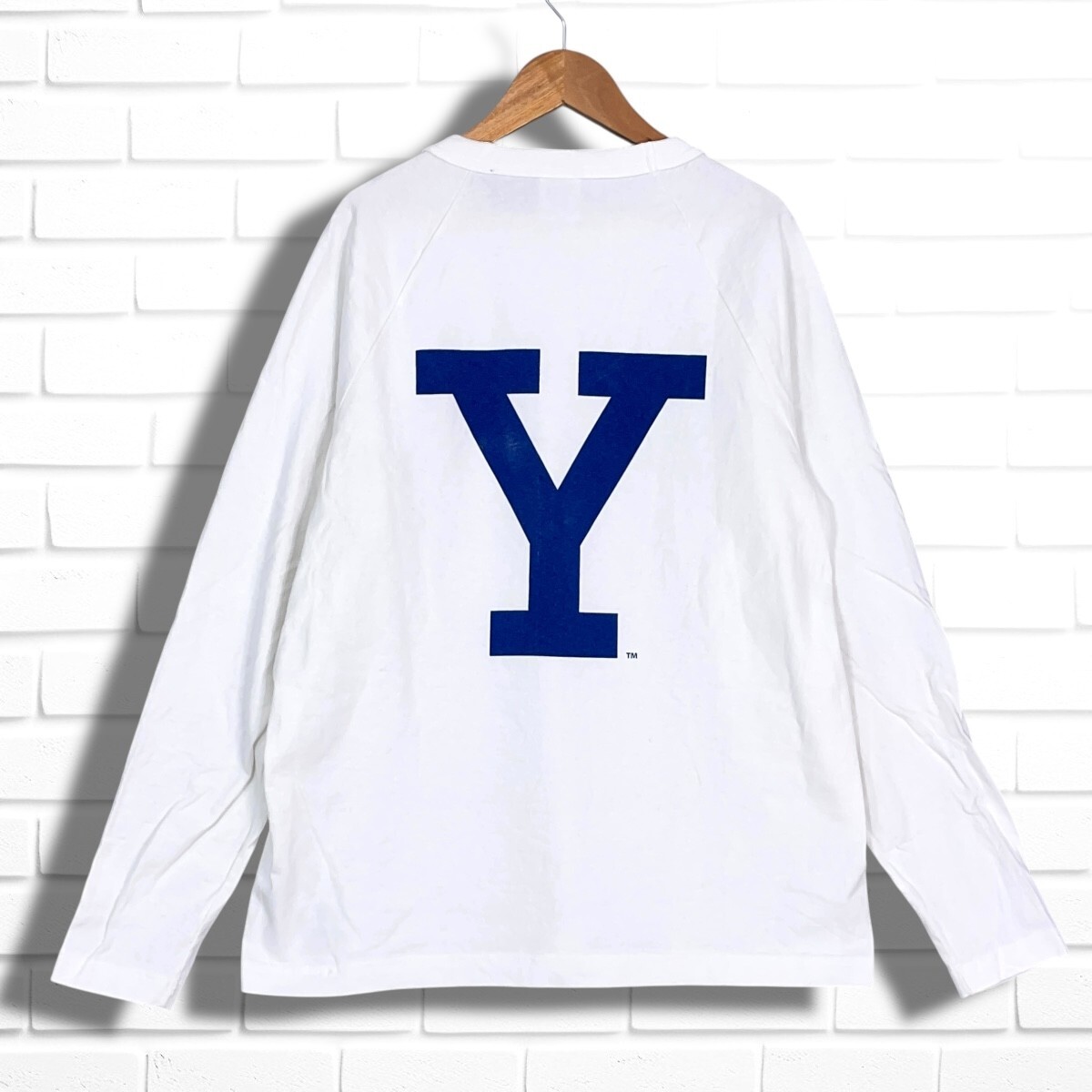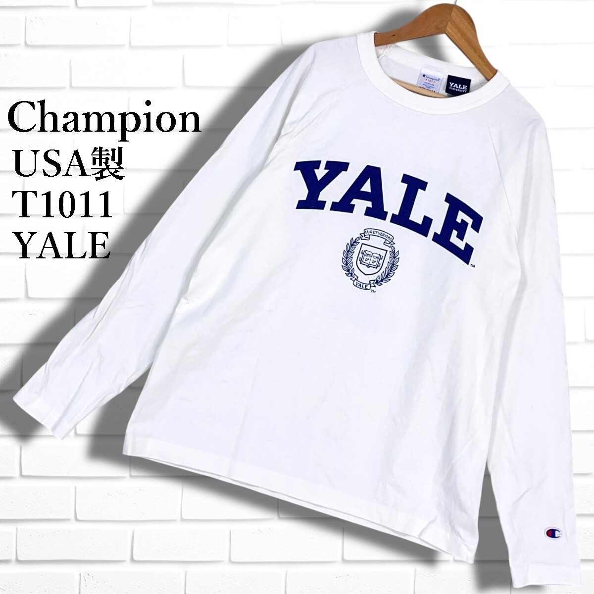 良品◆ Champion チャンピオン T1011 YALE カレッジT ロゴ プリント 長袖 Tシャツ ロンT カットソー 白 ホワイト メンズ M USA製 0655I□