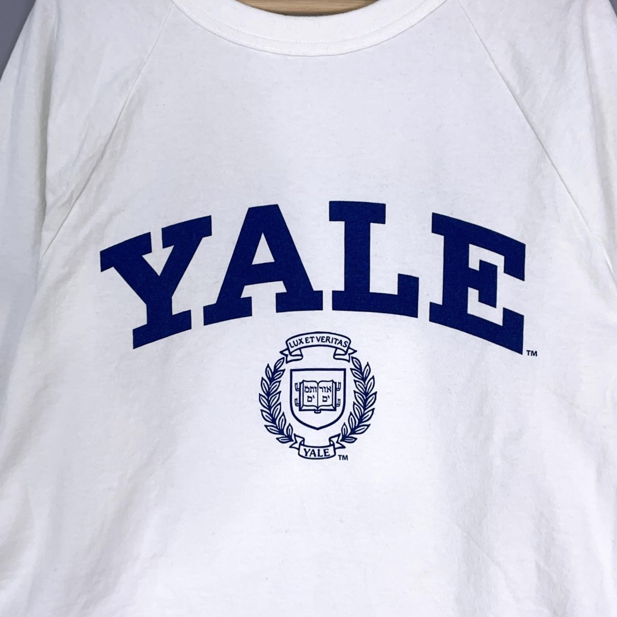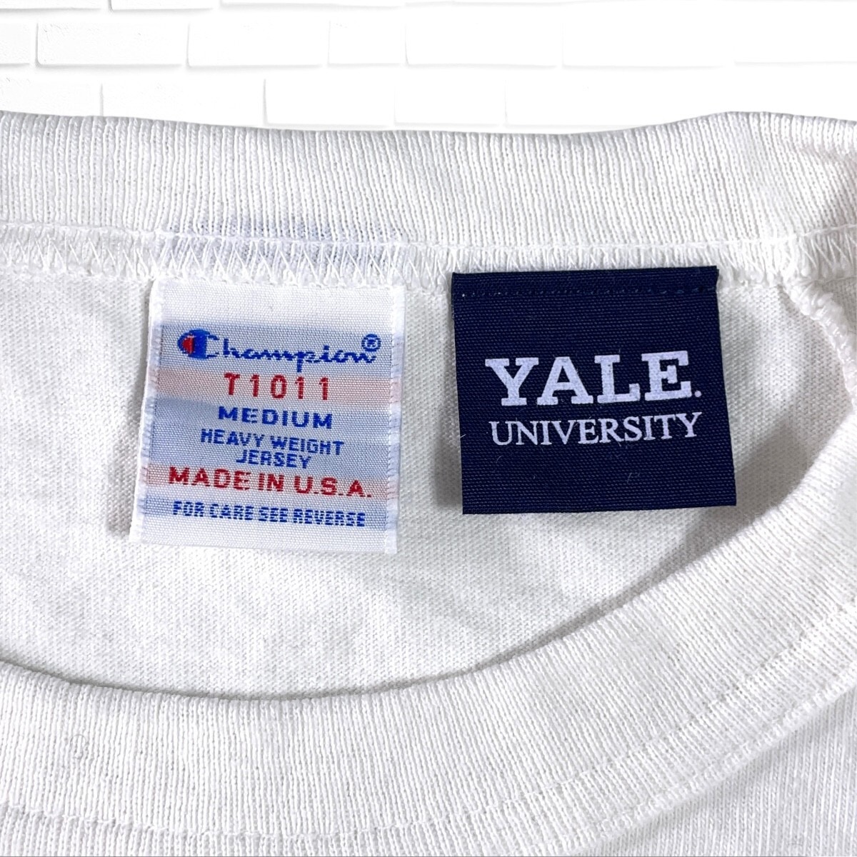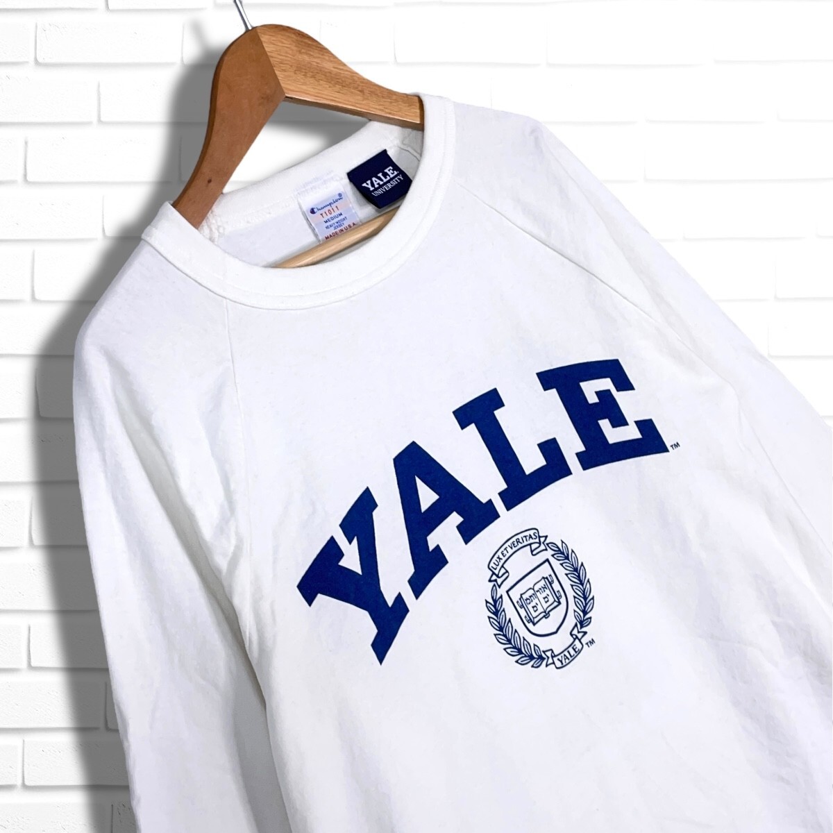 良品◆ Champion チャンピオン T1011 YALE カレッジT ロゴ プリント 長袖 Tシャツ ロンT カットソー 白 ホワイト メンズ M USA製 0655I□