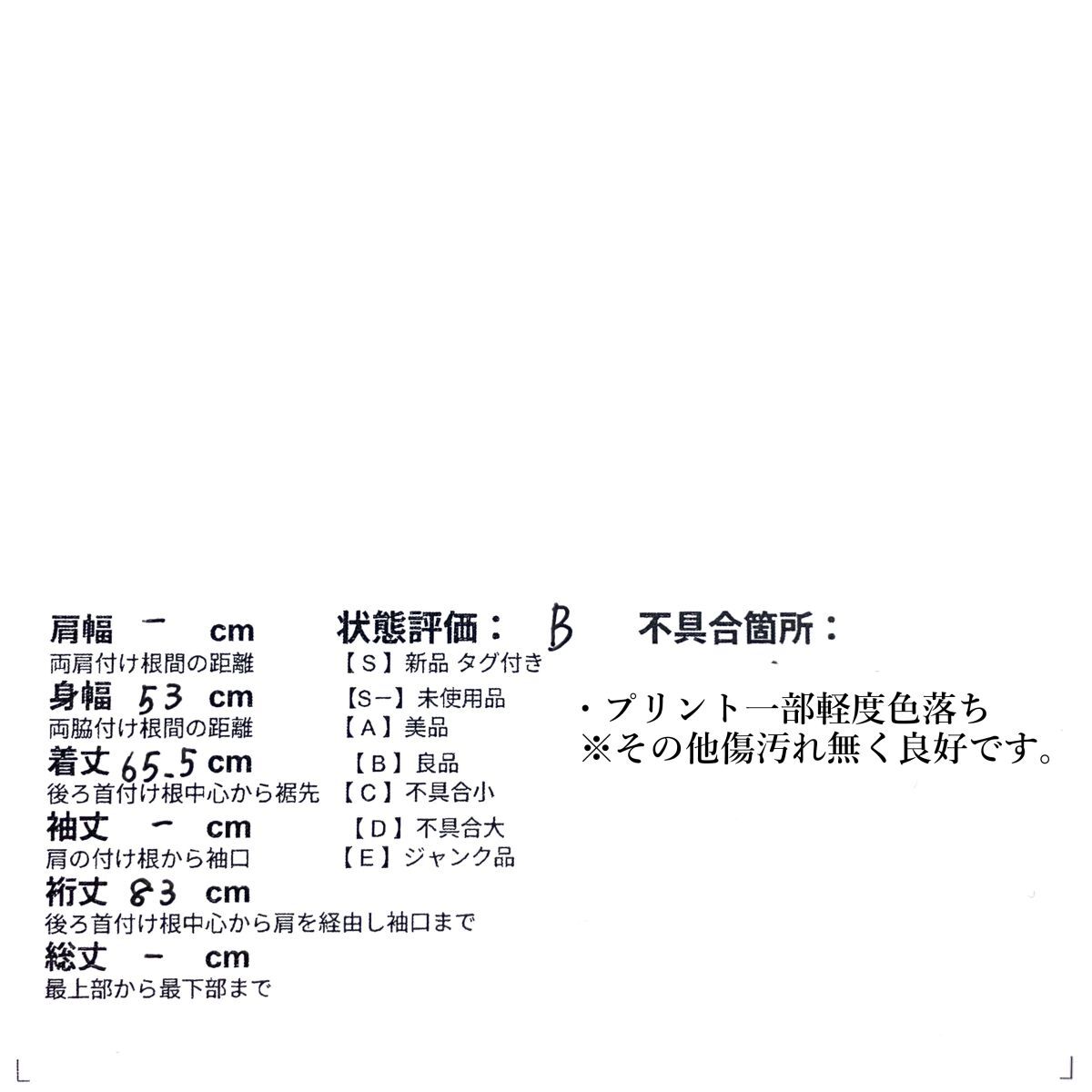 B・・・目立った汚れやダメージのない良品