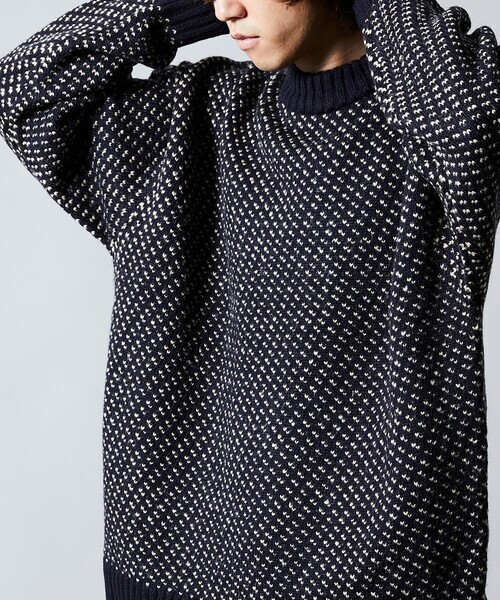 参考商品名:限定展開 ビッグシルエット バーズアイ クルーネックニット